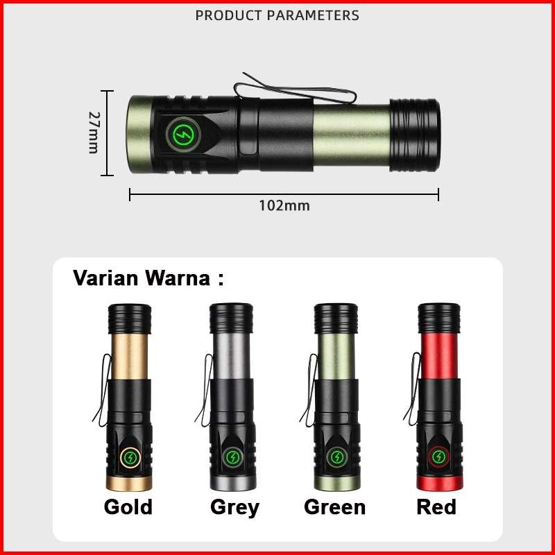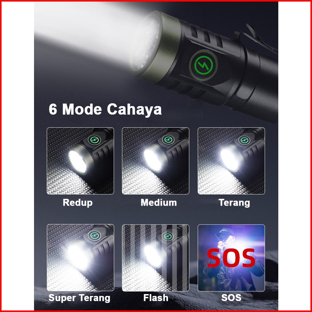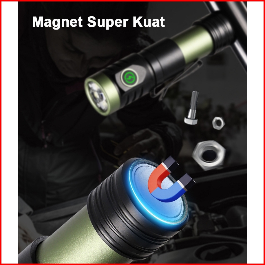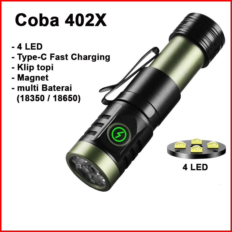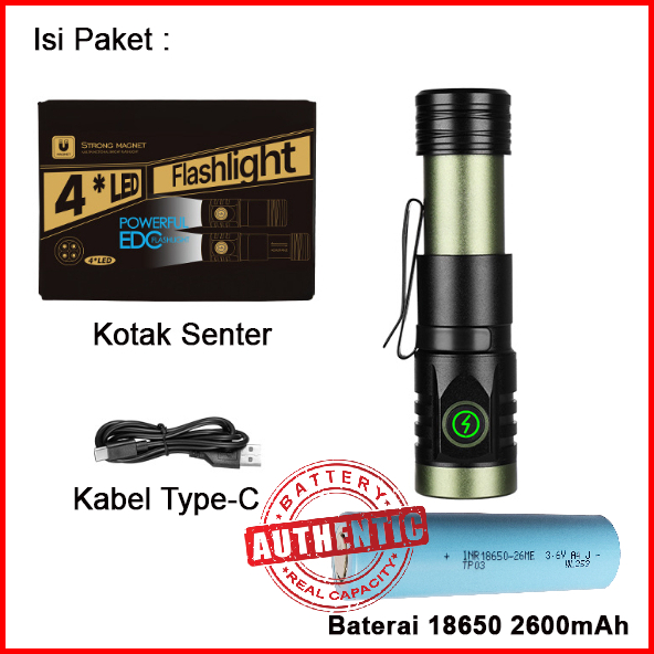 Senter Led Multifungsi 4xled P35 Super Terang Magnet Type-c