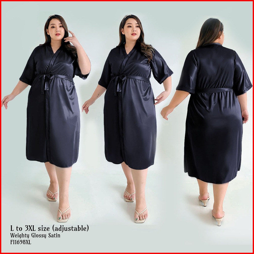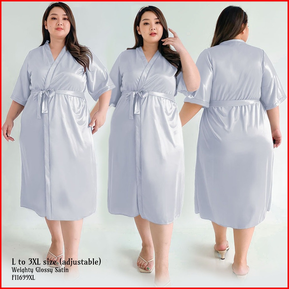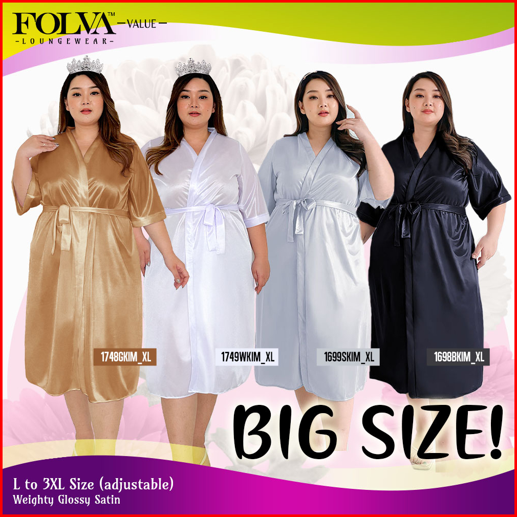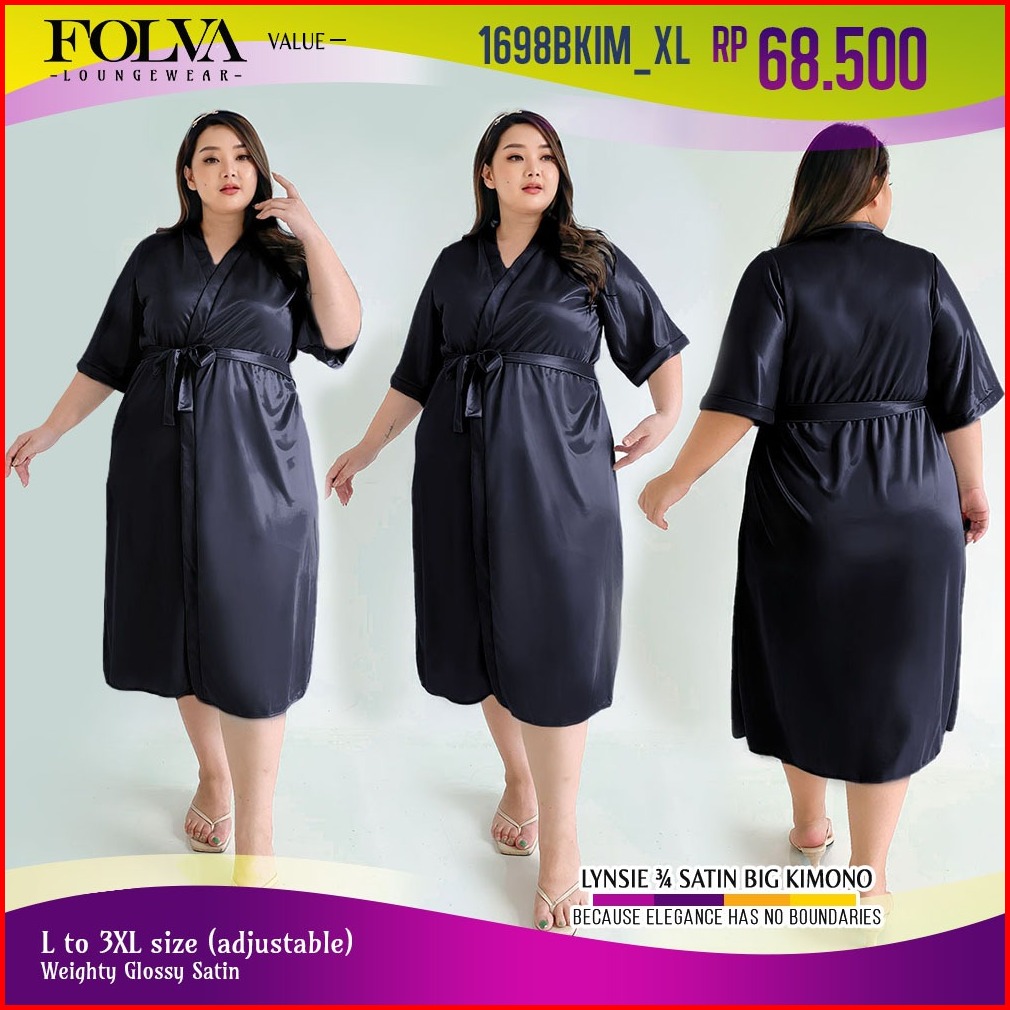 Folva Kimono Wanita Sleeping Robe Baju Tidur Satin Big Size