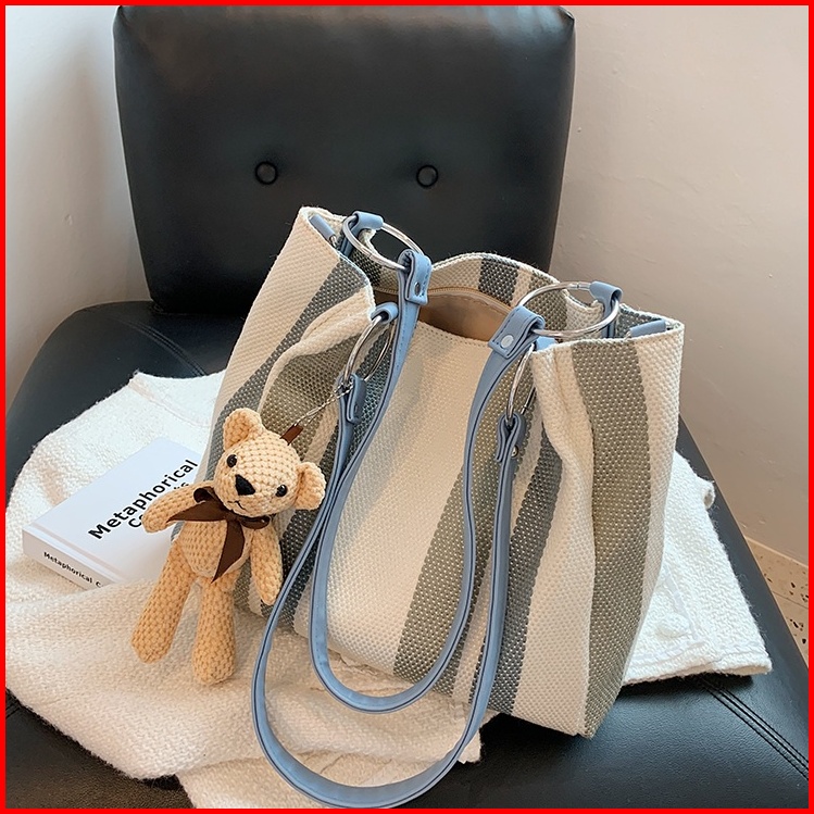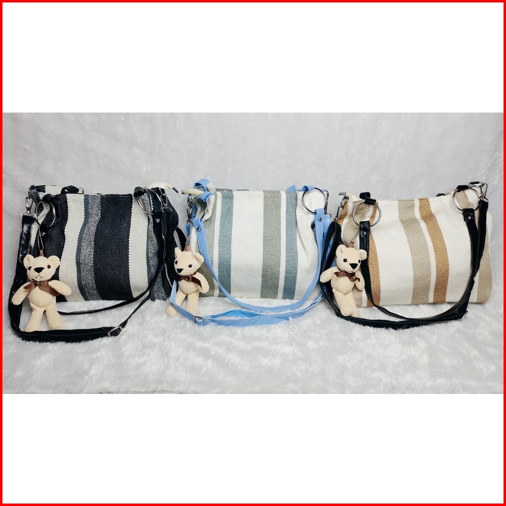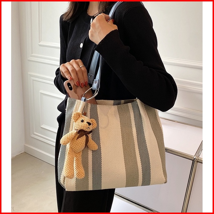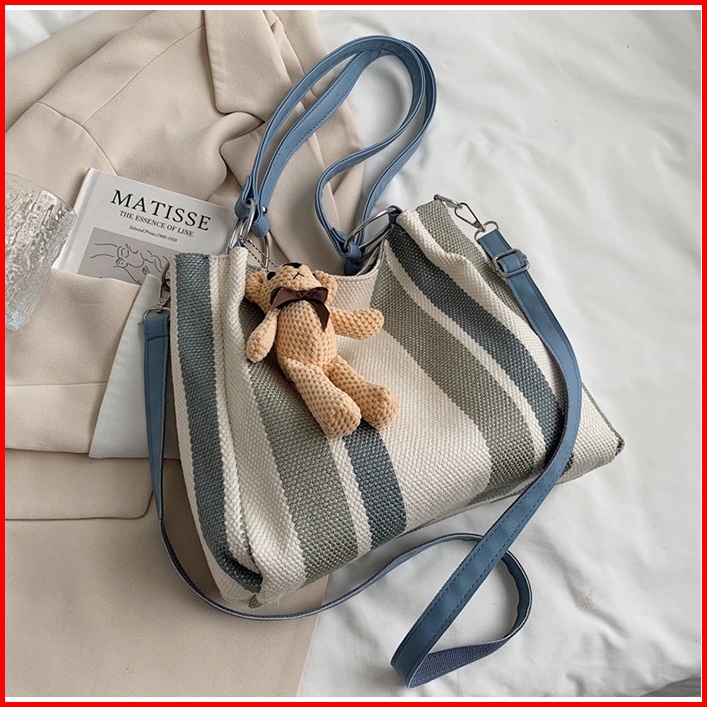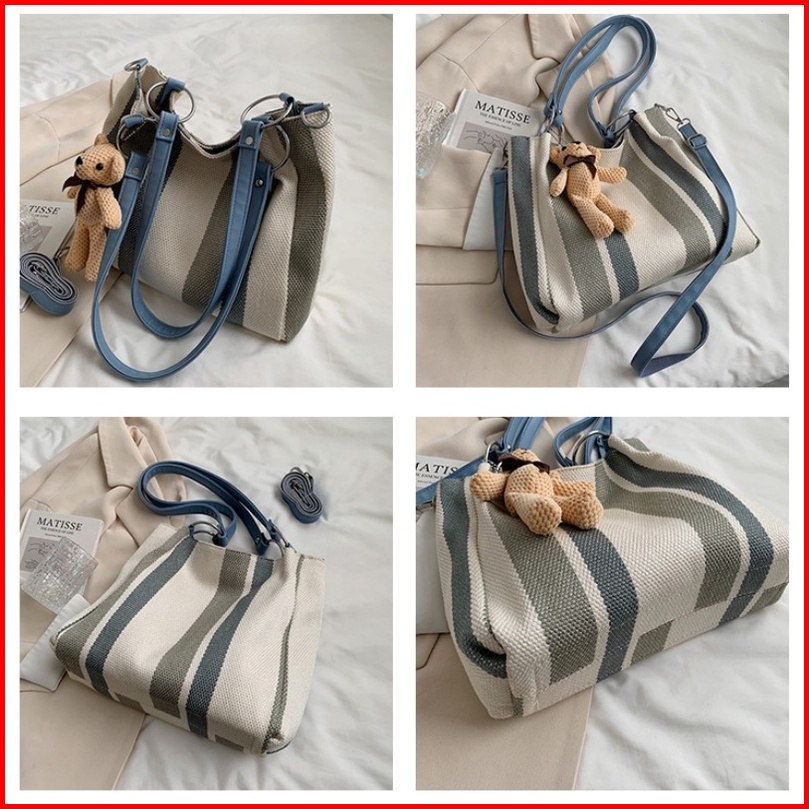Jk 929 Promo Cuci Gudang Tas Selempang Shoulder Tote Bag Cute Stripes Tas Bahu Simpel Modis Free Boneka Fashion Import Y