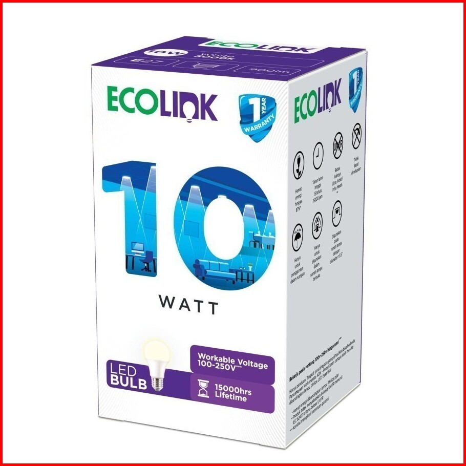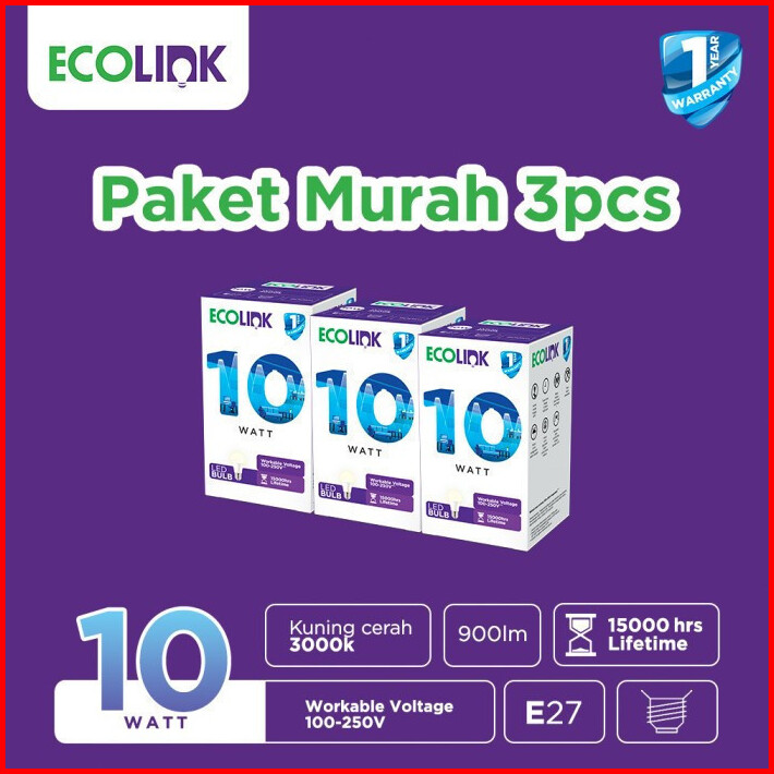 Ecolink Lampu Bohlam Led Bulb 10w Kuning Warm White Paket 3pcs