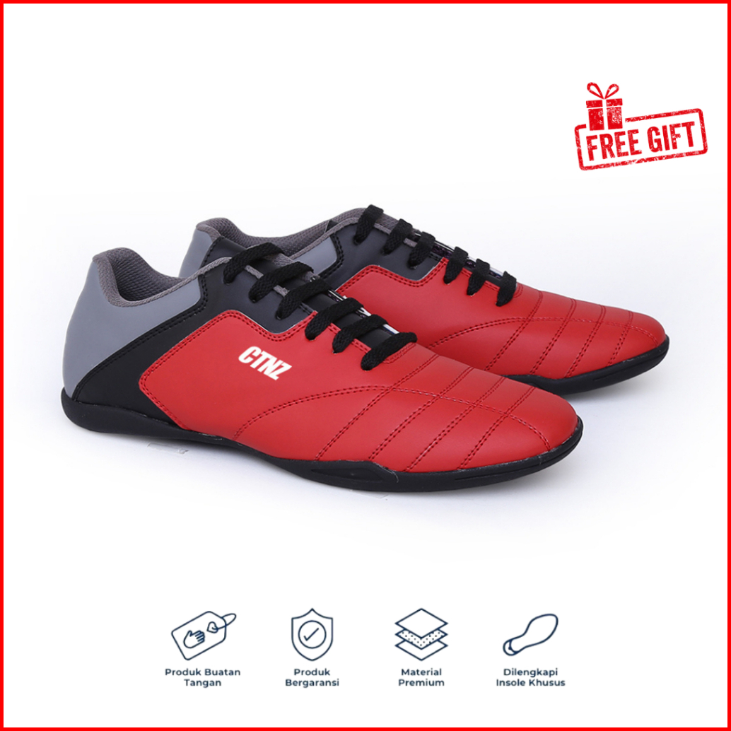 Free Gift Catenzo - Ns 108 Sepatu Olahraga Pria Futsal Original Bahan Kulit Sintetis Warna Merah Sapatu Olahraga Ori Lak