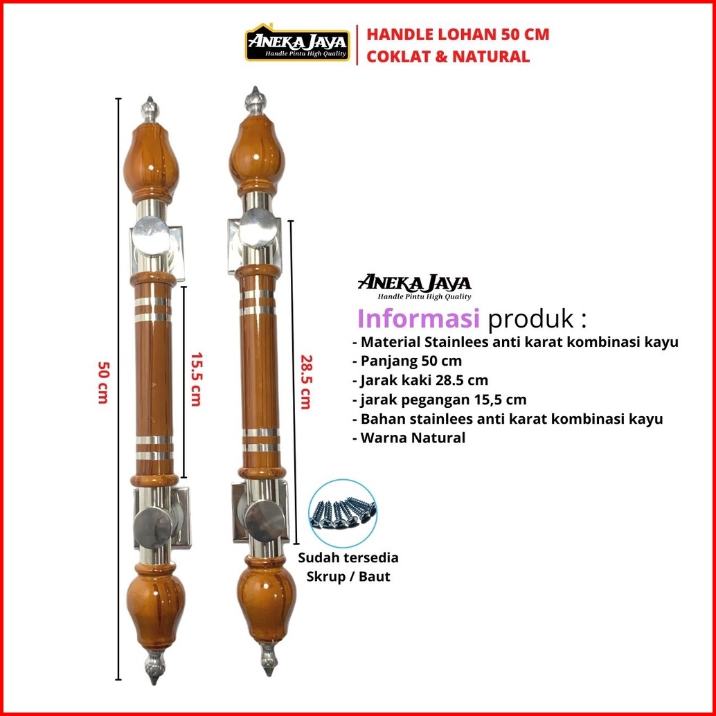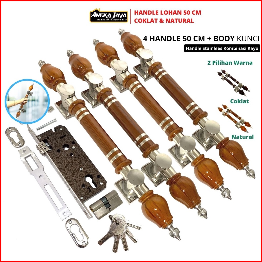 Handle Set Kunci Pintu Panjang 50 Cm Gagang Tarikan Pegangan Pintu Rumah Terabaru Bahan Stainlees Warna Coklat Natural K