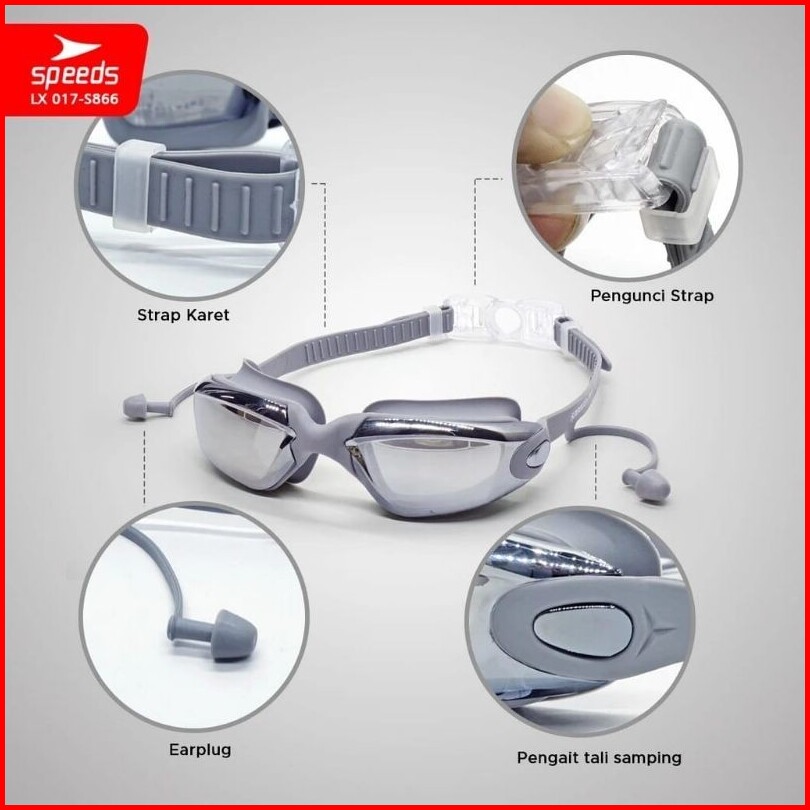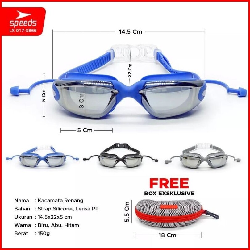 Speeds Gratis Box Kacamata Renang Dewasa Lensa Miror Penutup Telinga Anti Uv Kacamata Berenang Anti Vlog