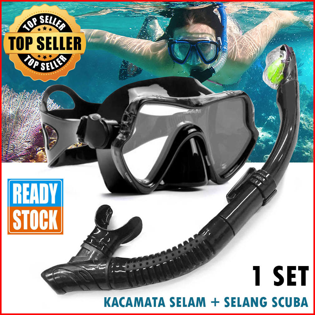 Kacamata Snorkling Selang Scuba Diving Snorkeling Tempered Glass 1 Set Anti Kabut Masker Penyelam