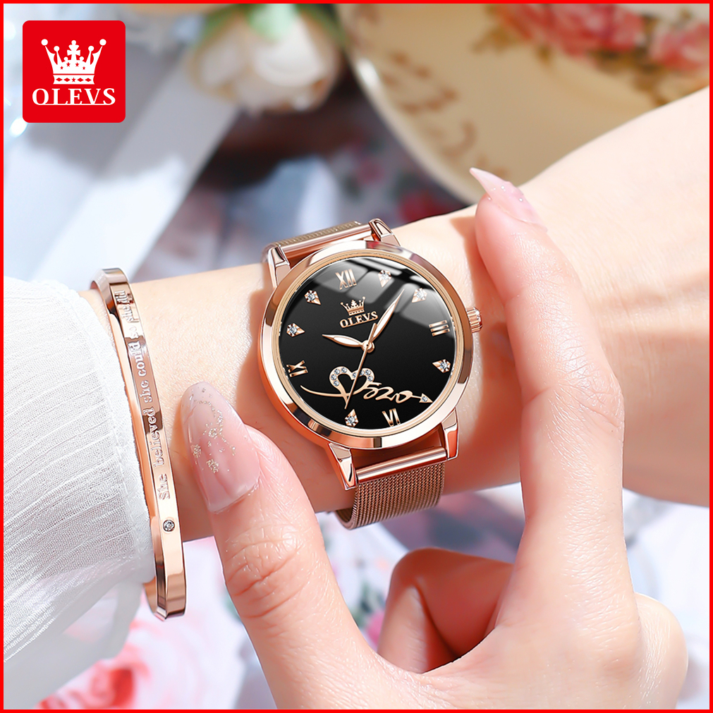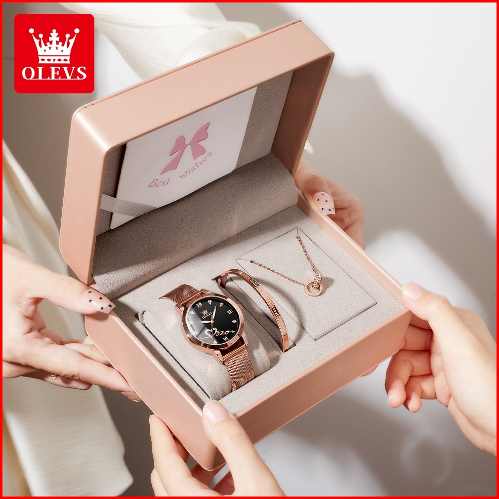 Olevs Jam Tangan Wanita Anti Air Original Terbaru 2025 Hadiah Mewah Set Anti Karat Kalung Gelang Elegan Kalender Analog