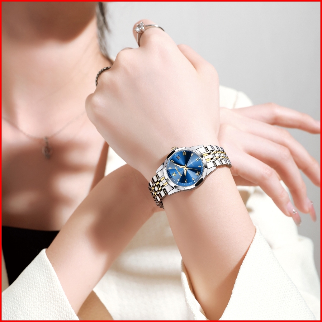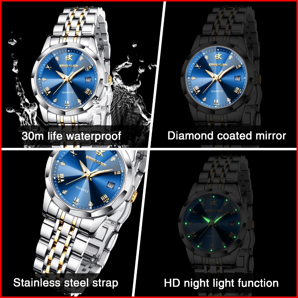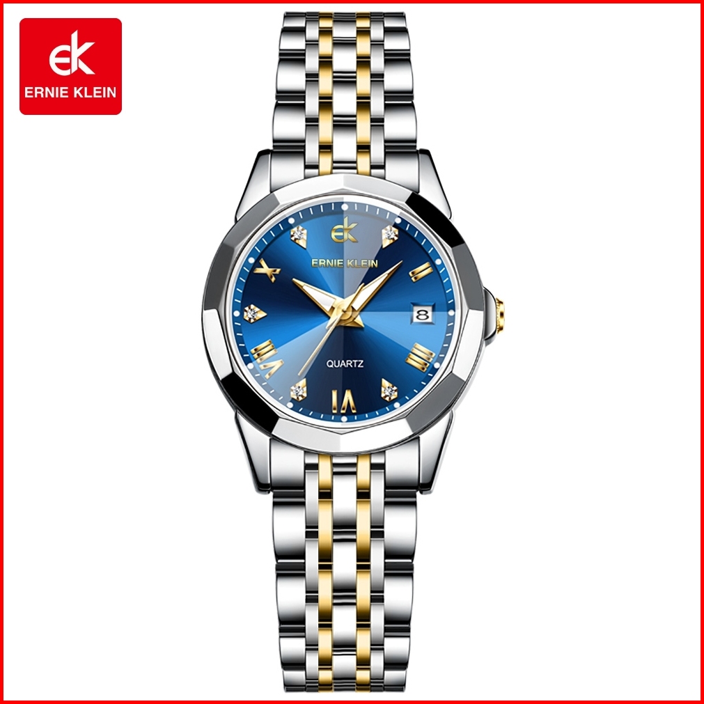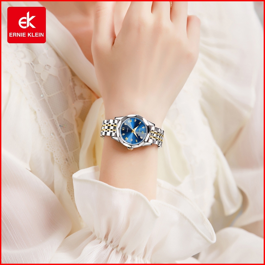 Ek Jam Tangan Wanita Original Anti Air Terbaru 2024 Elegan Keren Stainless Steel Prismatik Berlian Dial Tampilan Cahaya