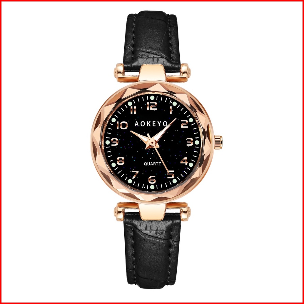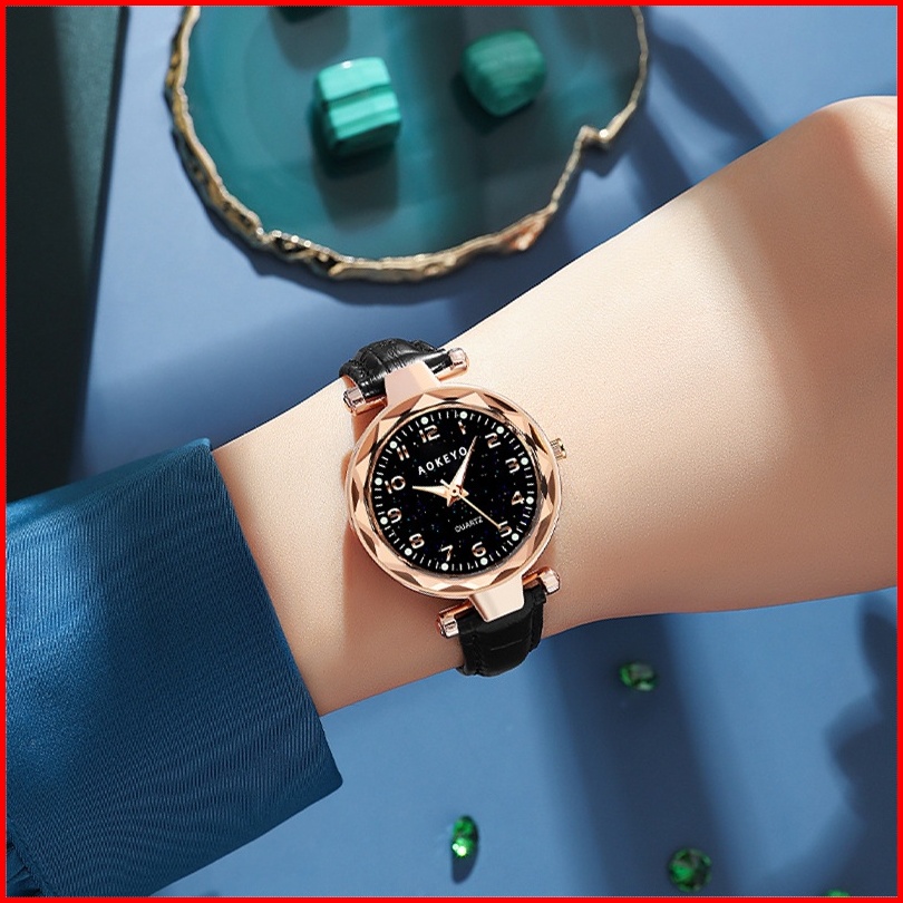 Aokeyo W157 Jam Tangan Wanita Original Santai Tahan Air Langit Berbintang Hitam Modis Jam Tangan Wanita Free Box Kartu G