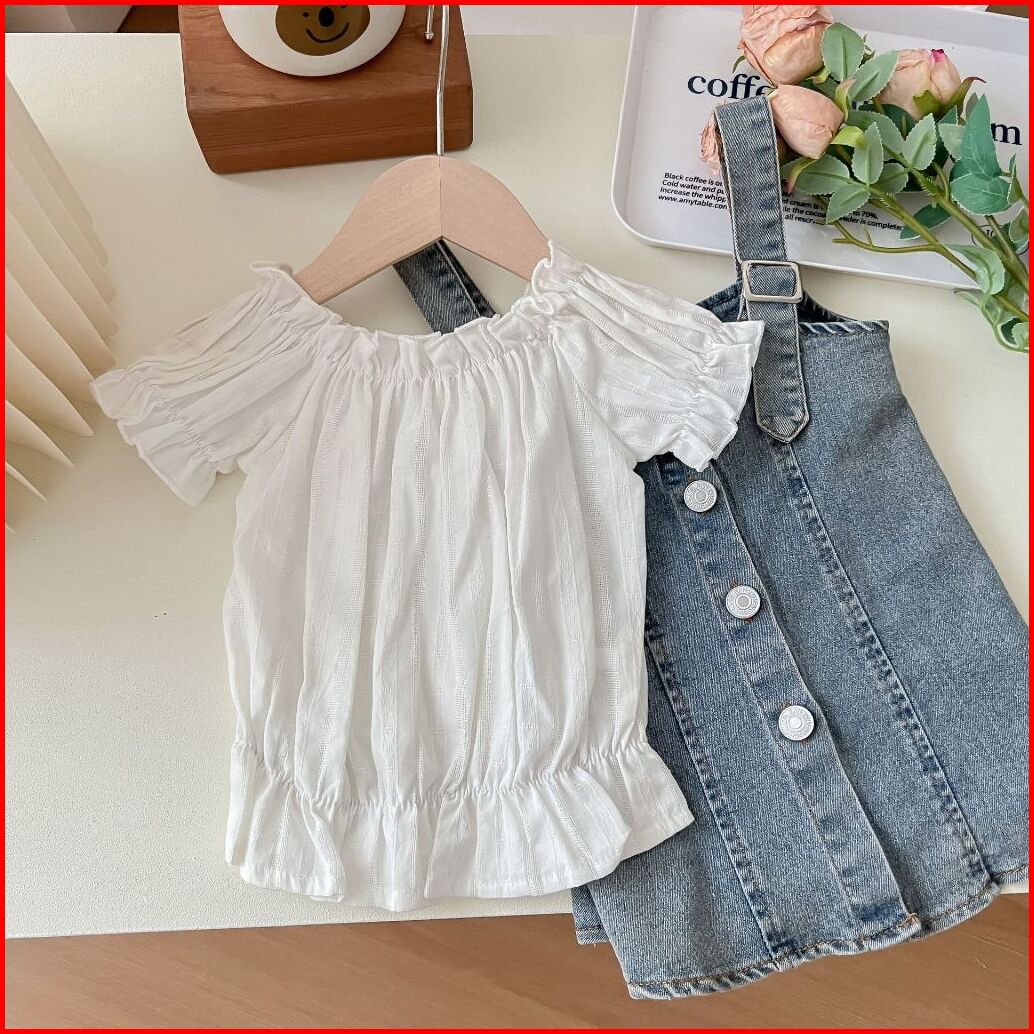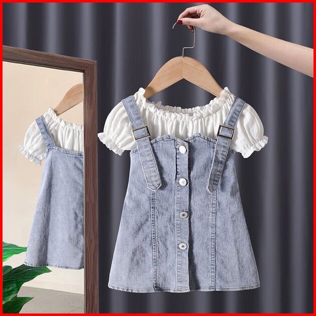 Quenza Setelan Dress Anak Perempuan Jeans Kombinasi Rayon Crinkle Modis Korean Style Usia 1-6 Tahun