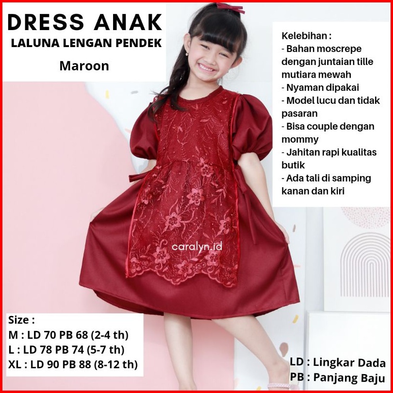 Dress Anak Laluna Lengan Pendek Premium