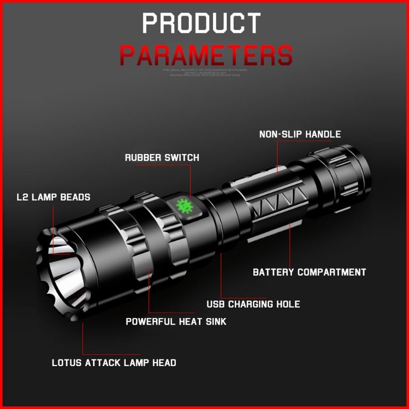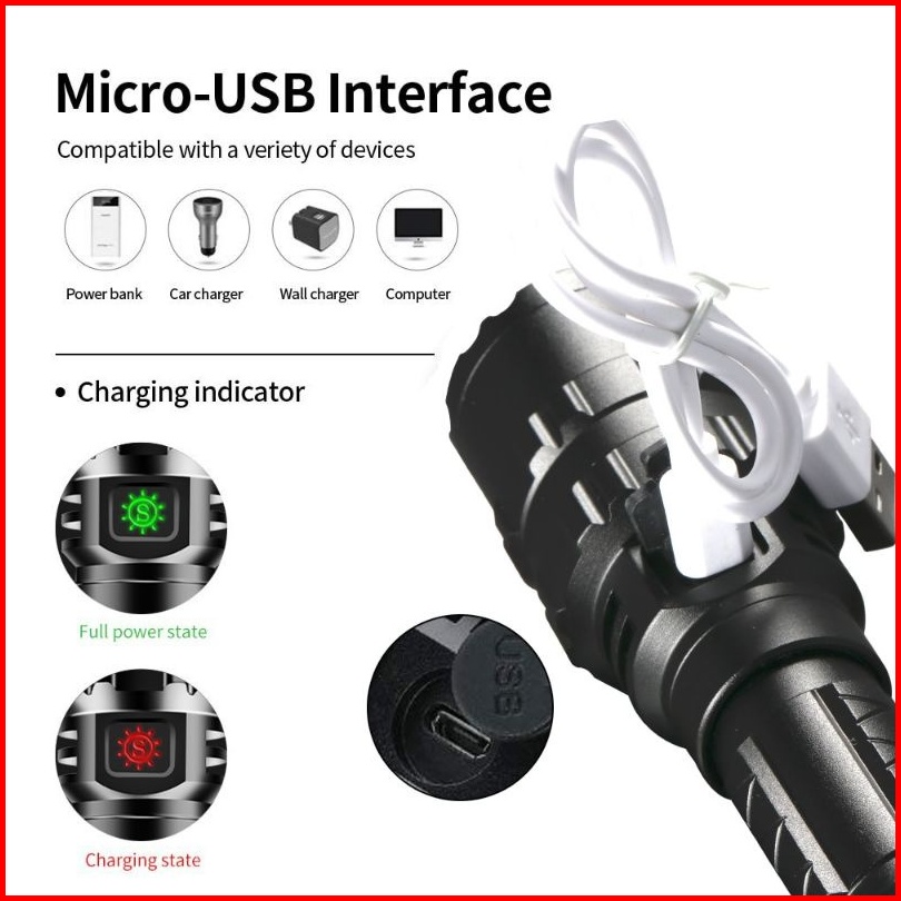 Senter Led Cas Charger Super Terang Jarak Jauh 6500 Lumens Original