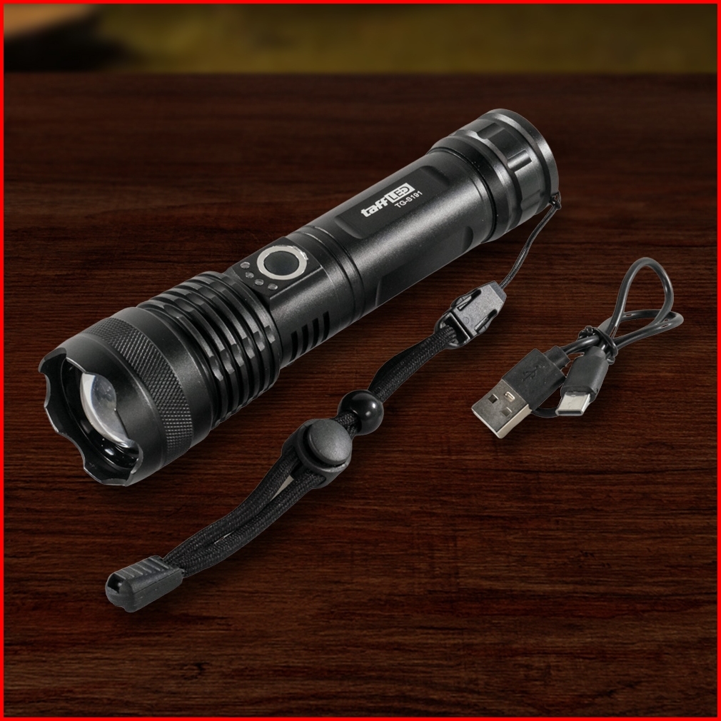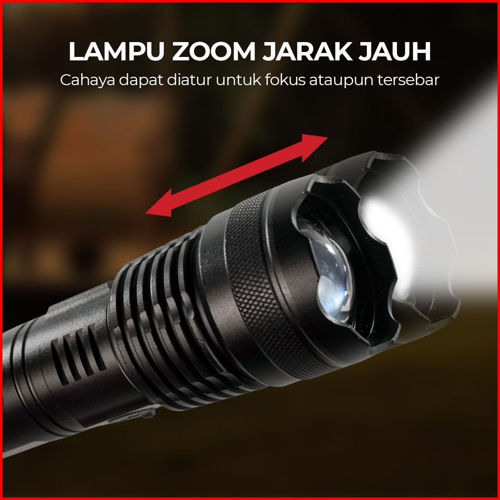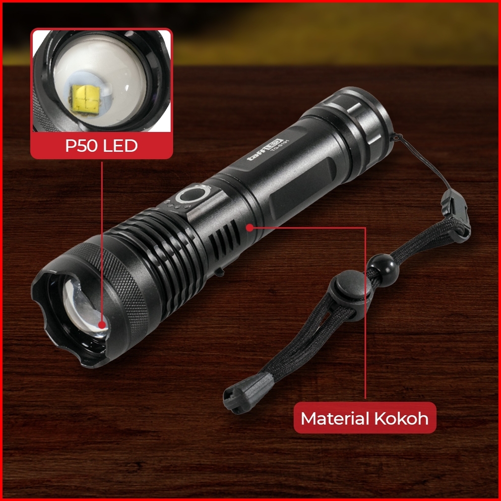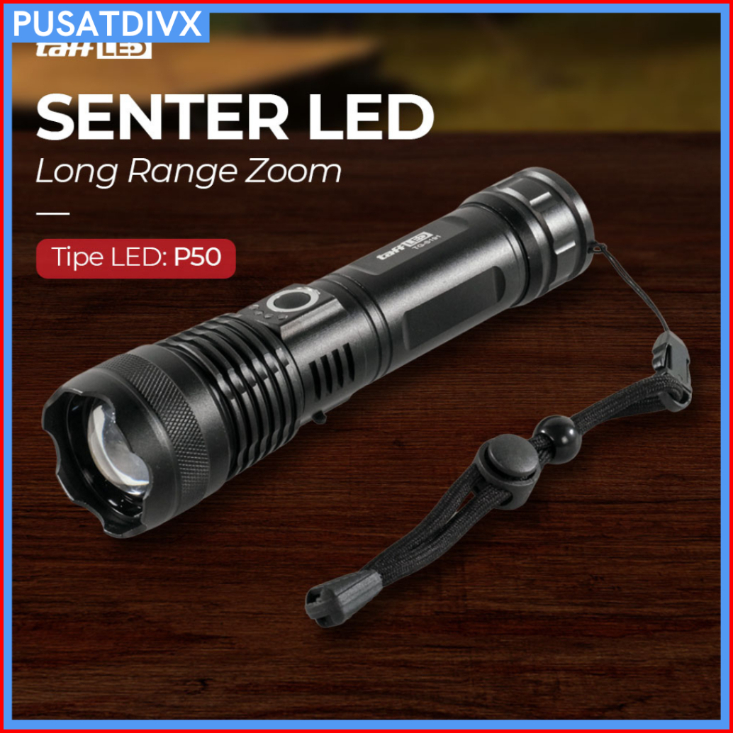 Sanji Taffled Senter Led Long Range Zoom Usb Rechargeable P50 Tg-s191 Lampu