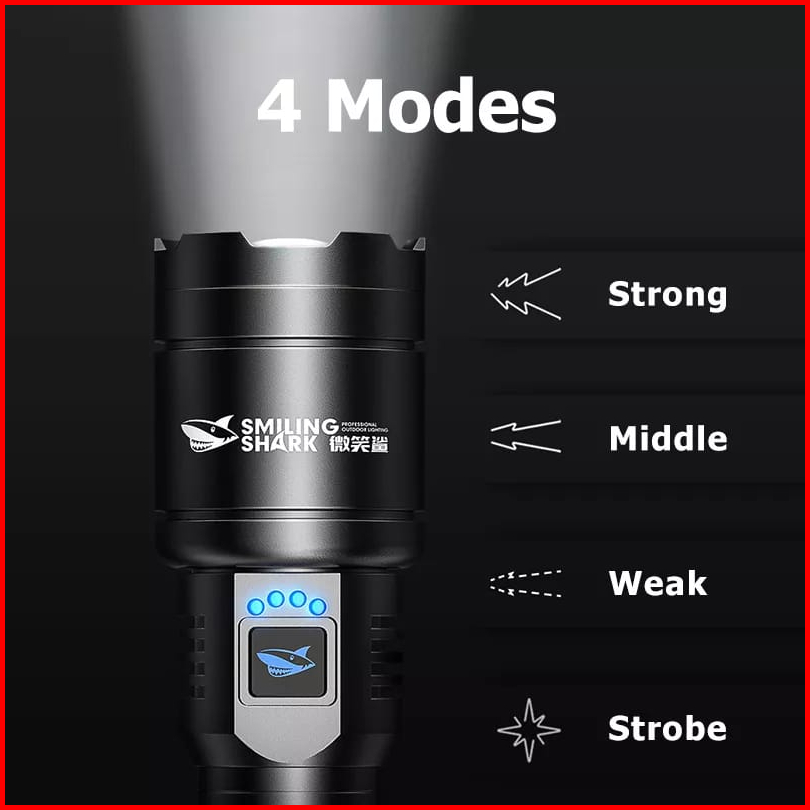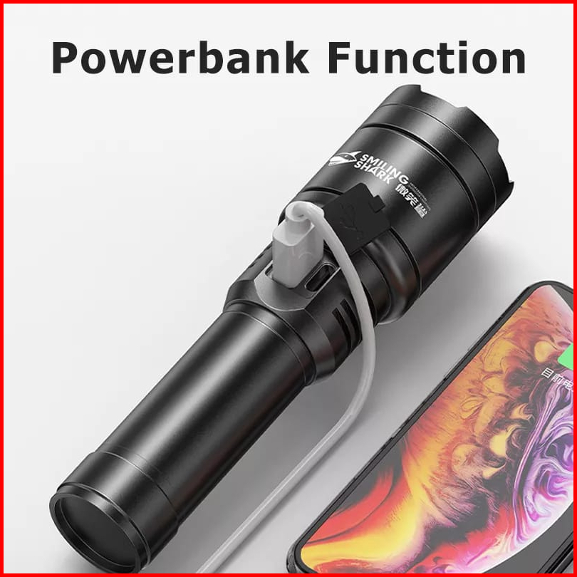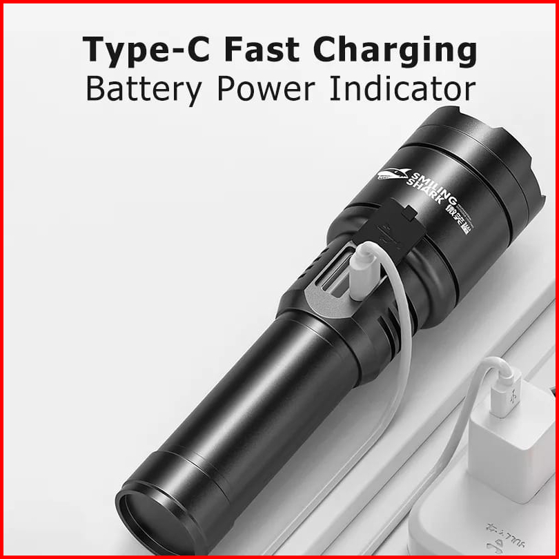 Senter Led Smiling Shark Sd-5220 M80 - Zoom - Cahaya Super Terang - Usb Type C - Mode Powerbank