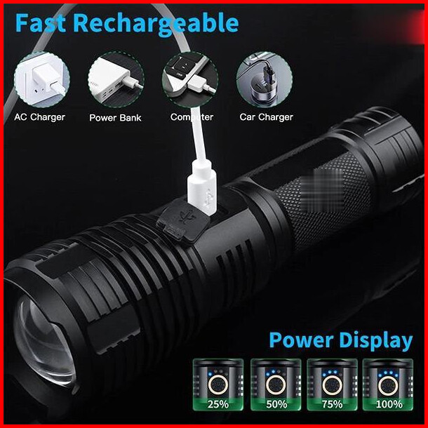 Senter Led Super Terang Mini Rechargeable Black 30w
