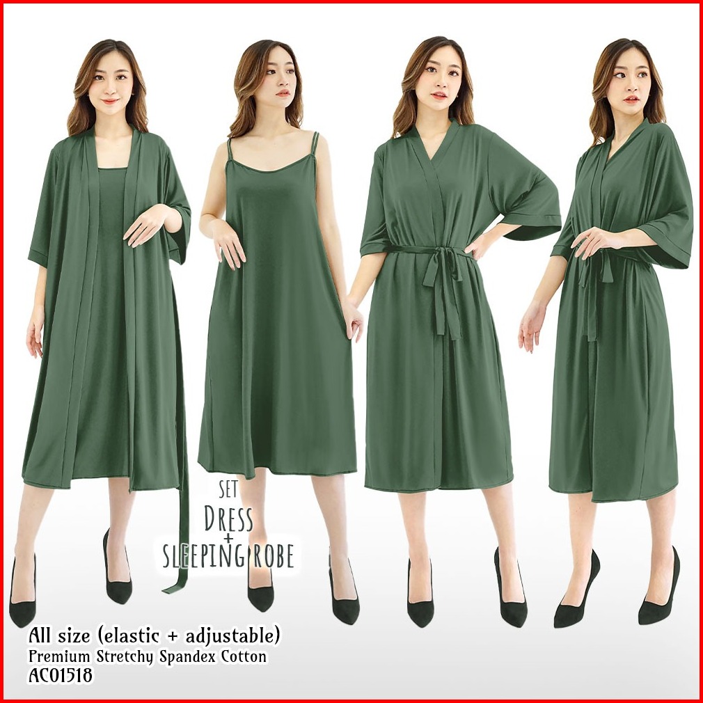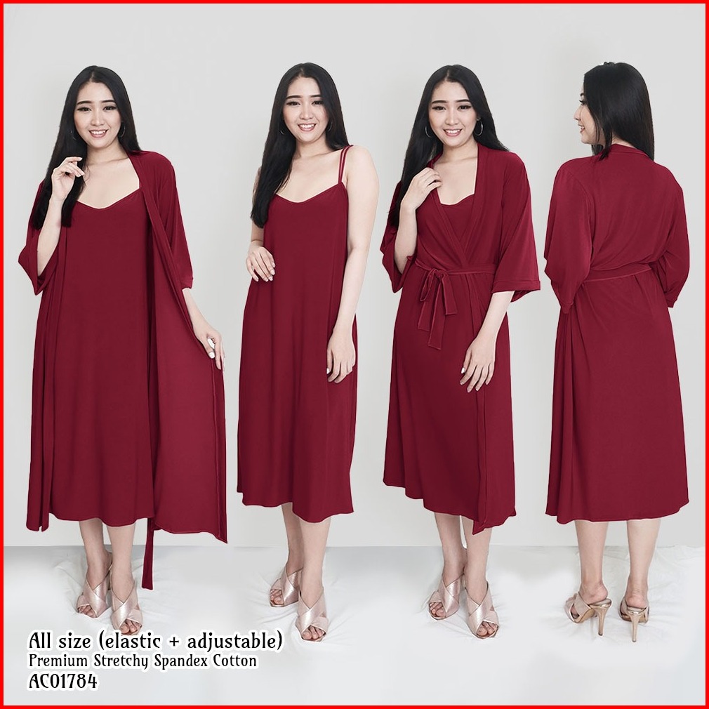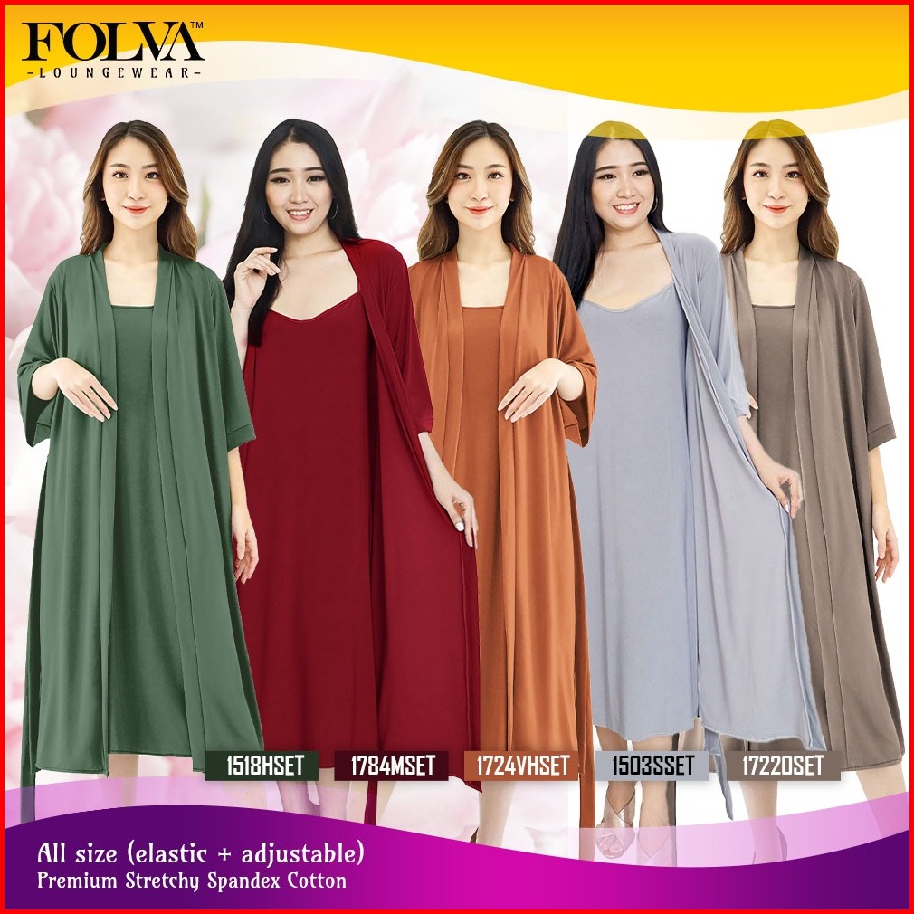 Folva Baju Tidur Kimono Set Inner Tanktop Dress Spandex Melar