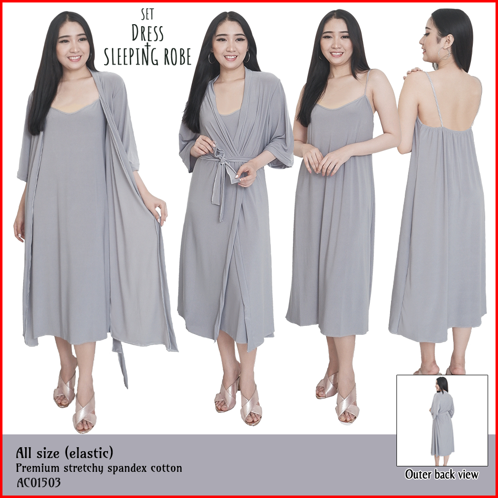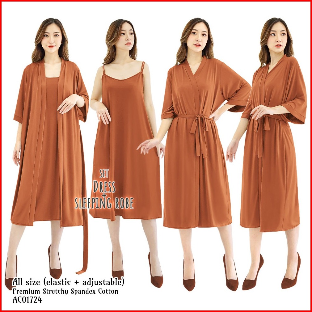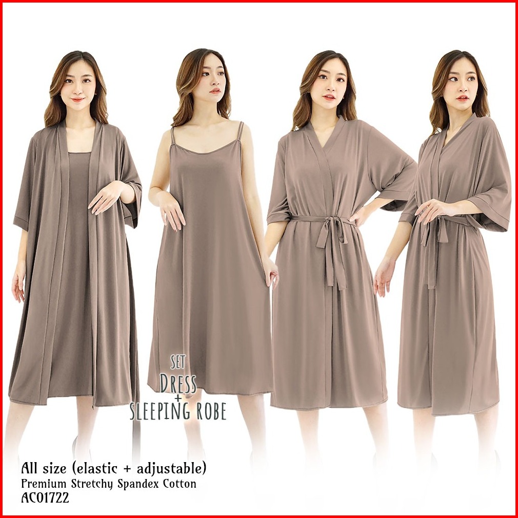 Folva Baju Tidur Kimono Set Inner Tanktop Dress Spandex Melar