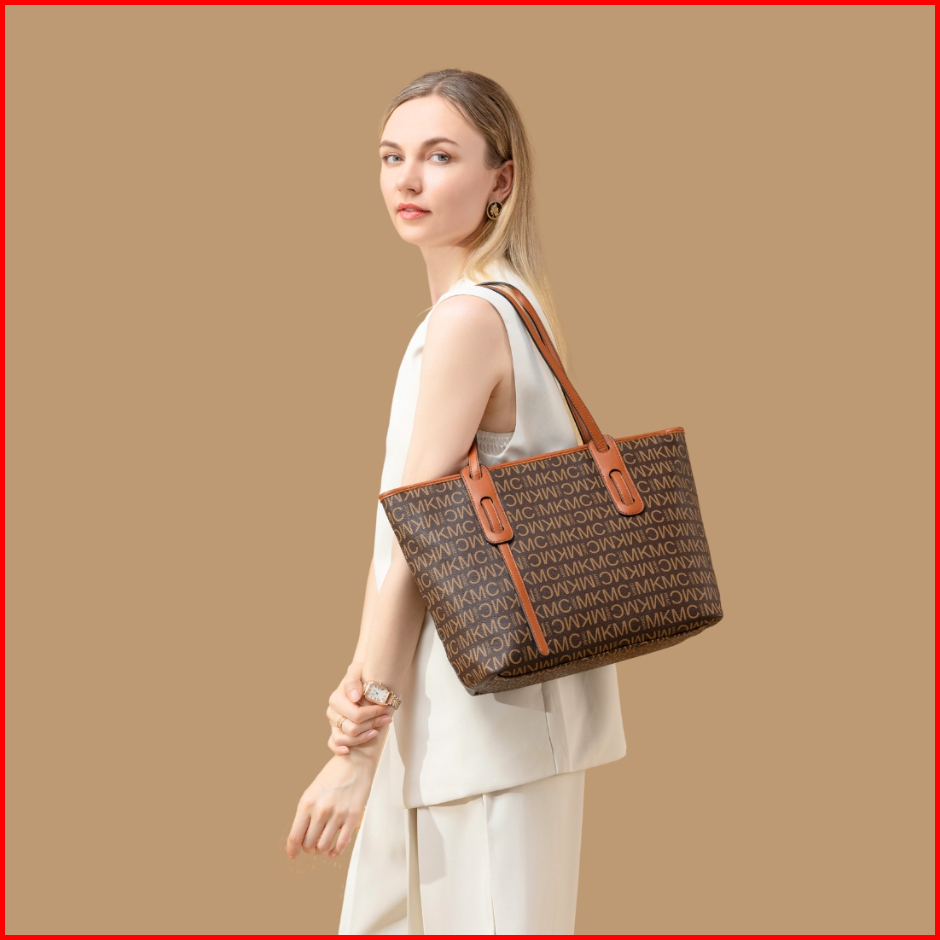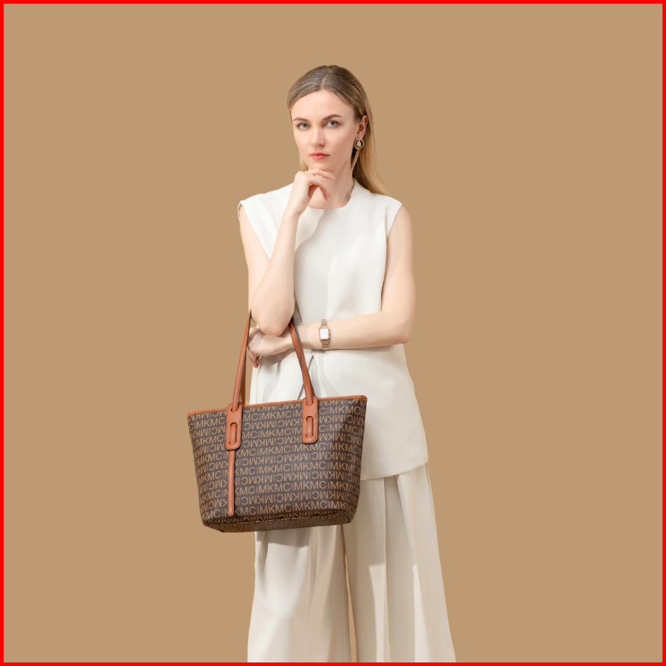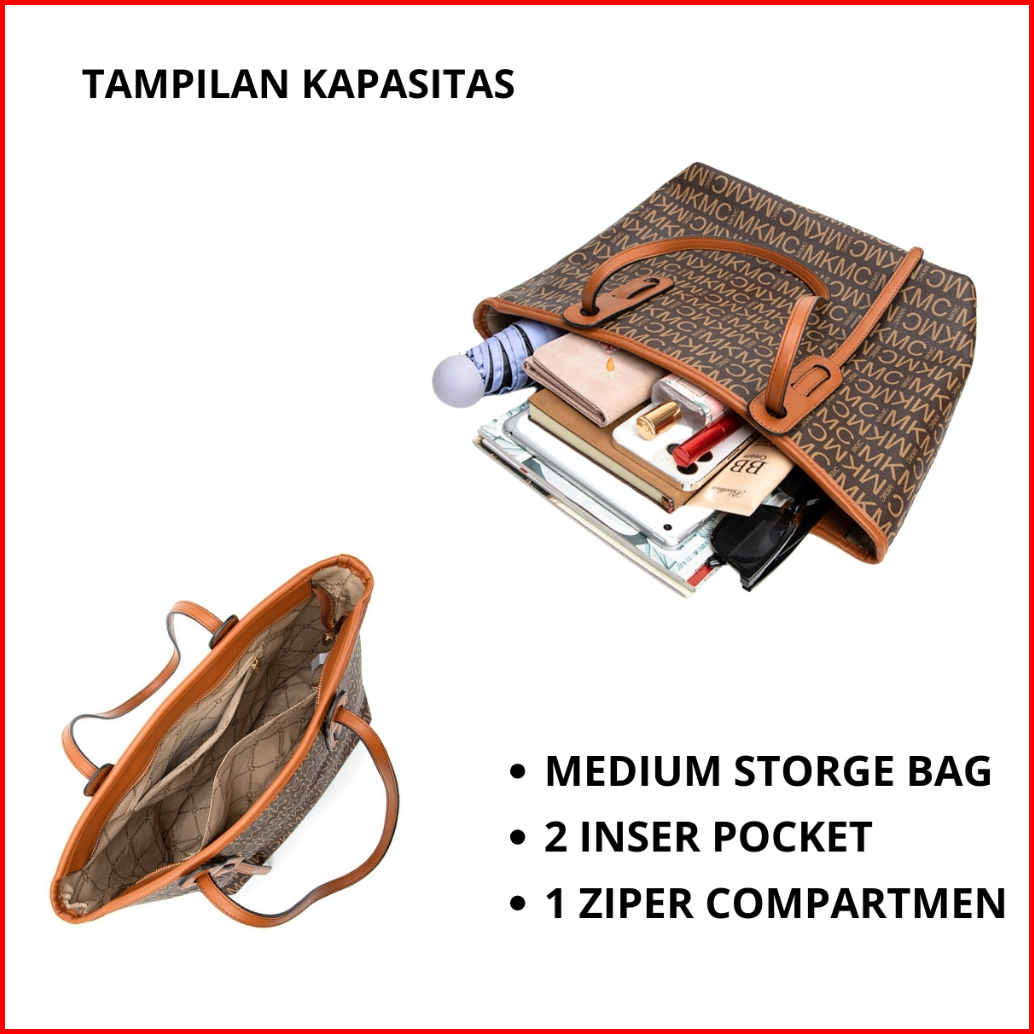 Mkmc Totebag Wanita Import Medium Tas Bahu Monogram Kulit Sintetis Korean Style Shoulder Bag Kondangan Resleting Terbaru