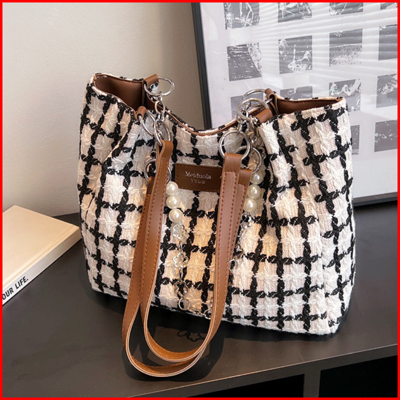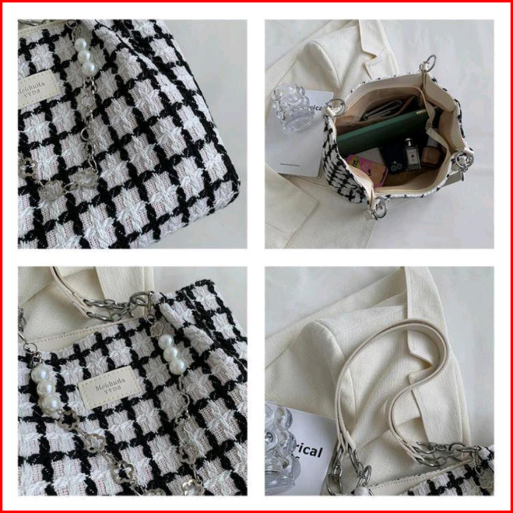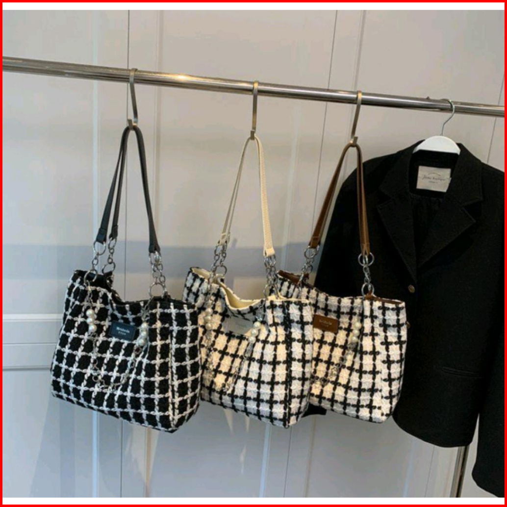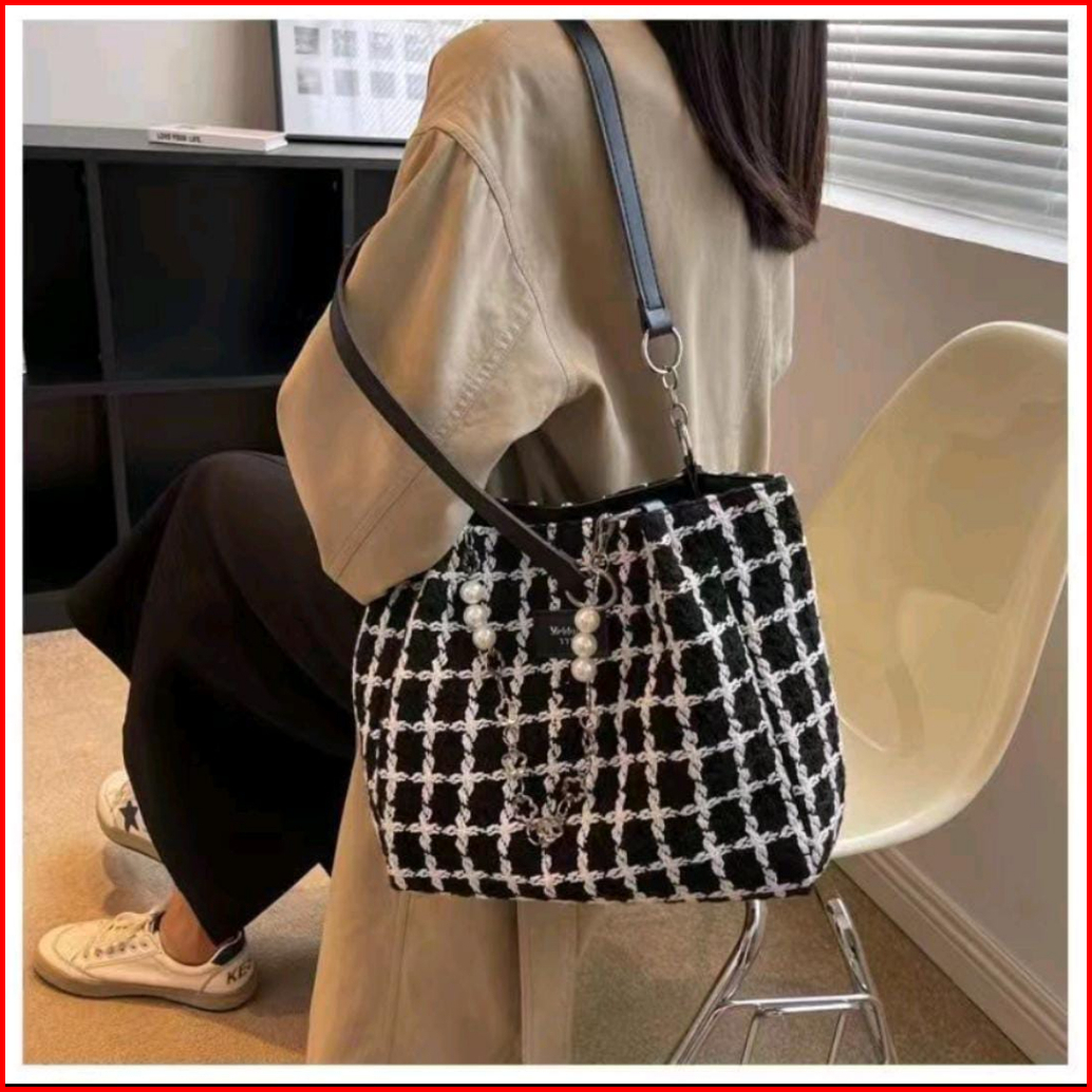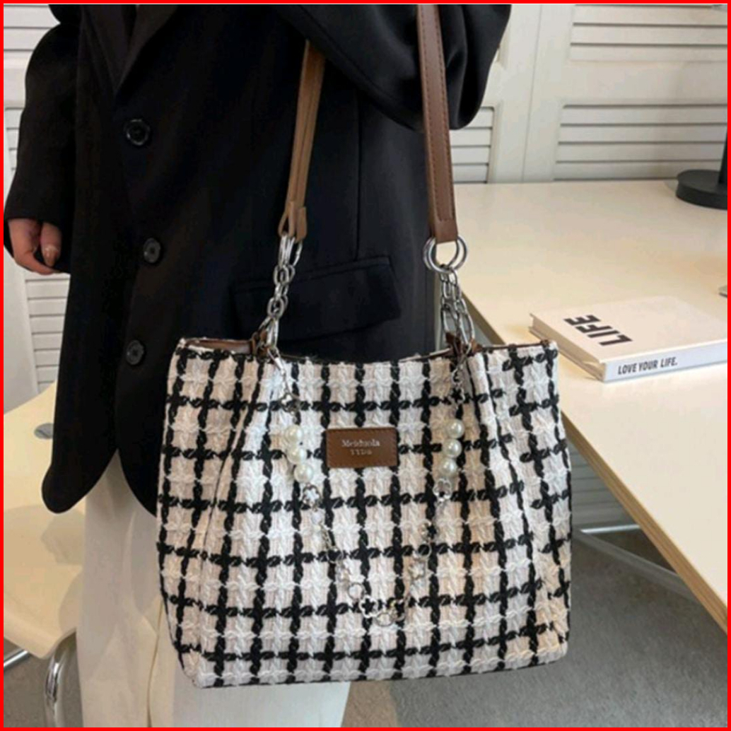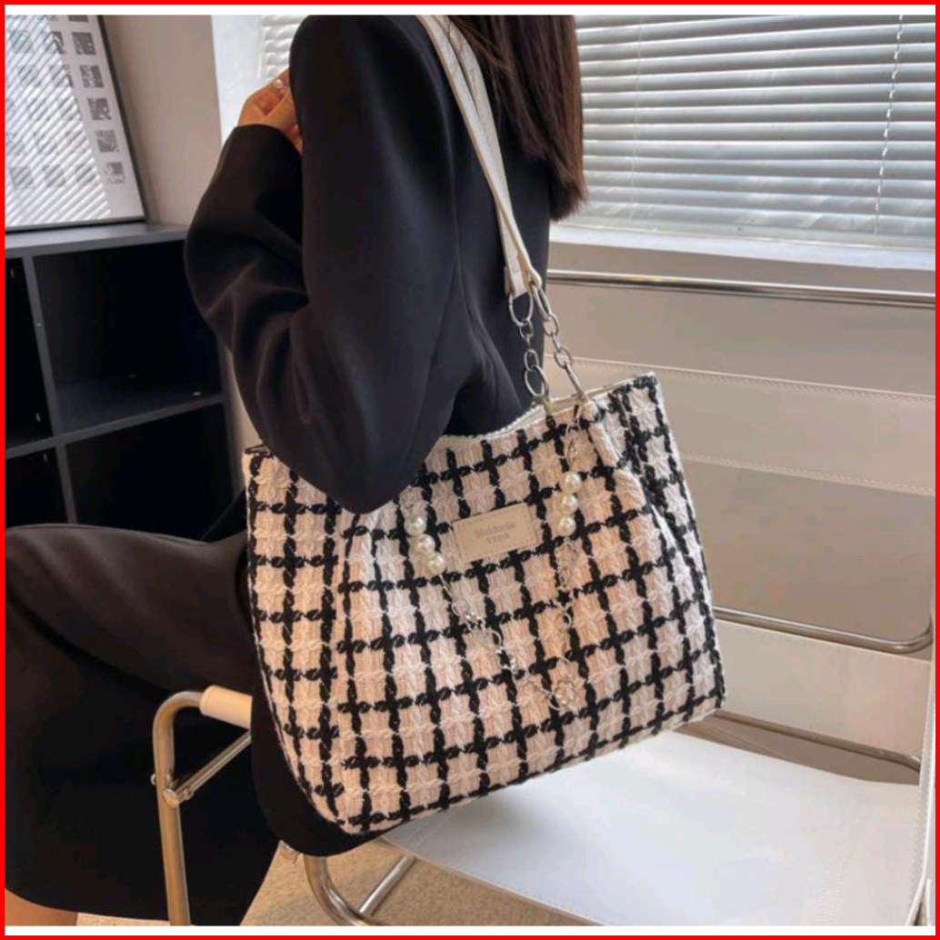 Tasimportmewah Tote Bag Wanita Import T31456 Warna Black White Brown
