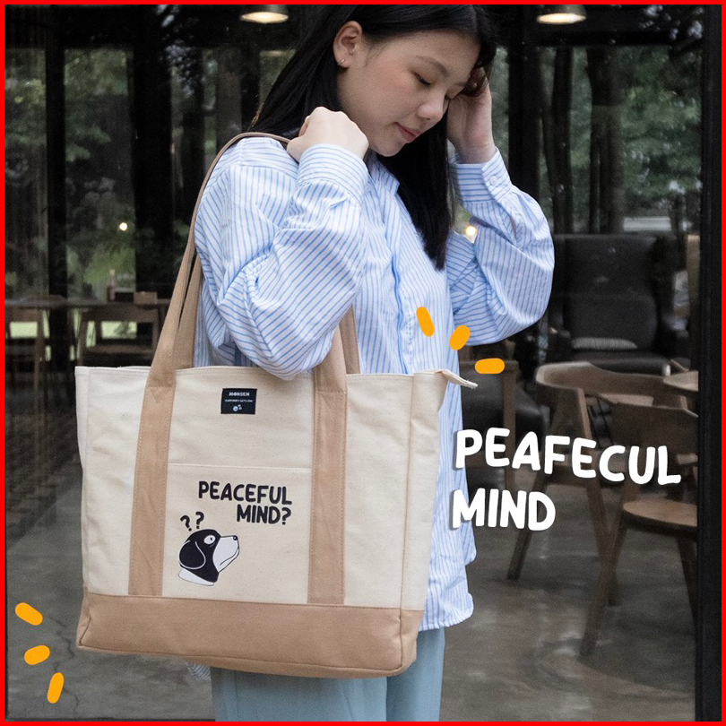 Monsen Totebag Peaceful Mind Resleting Cotton Twill Totebag Tebal