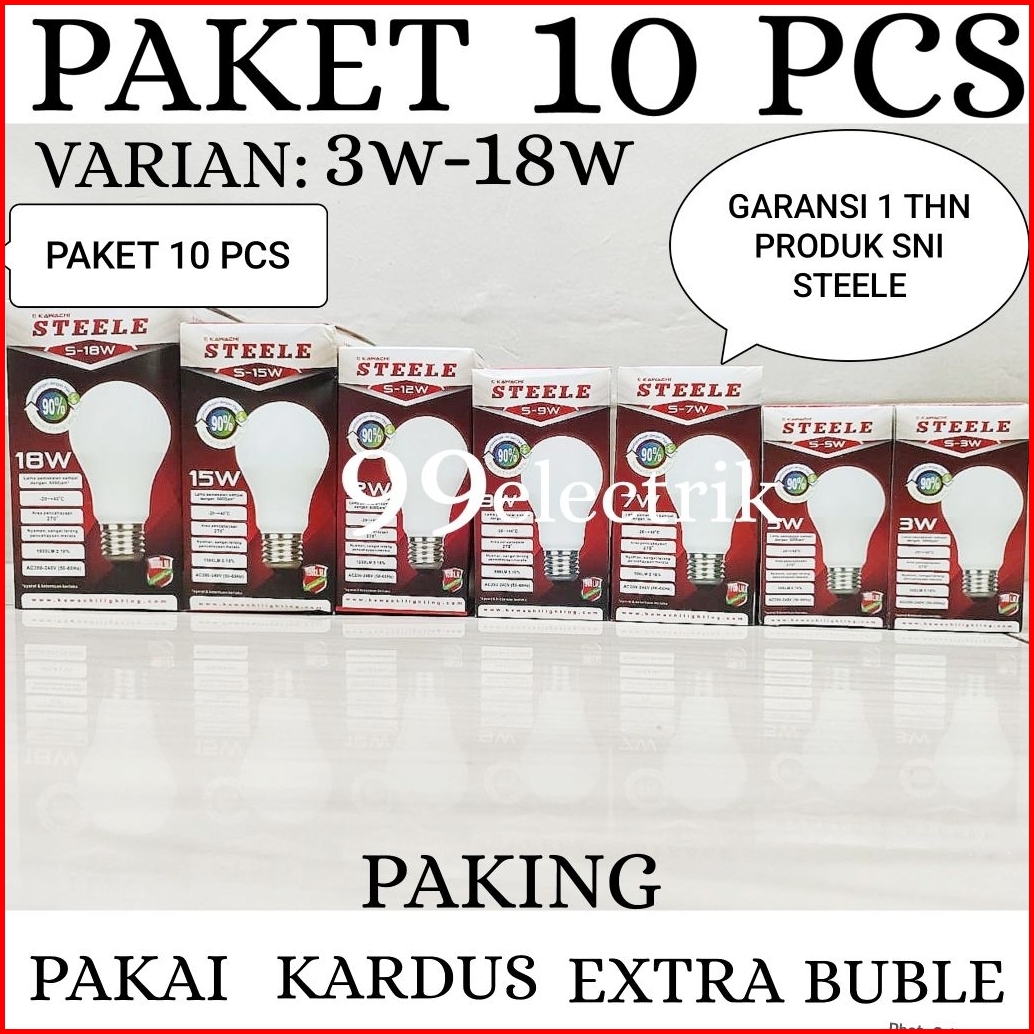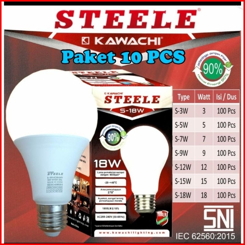 Bohlam Led Murah Garansi 1 Tahun Kawachi Steele Paket 10 Pcs
