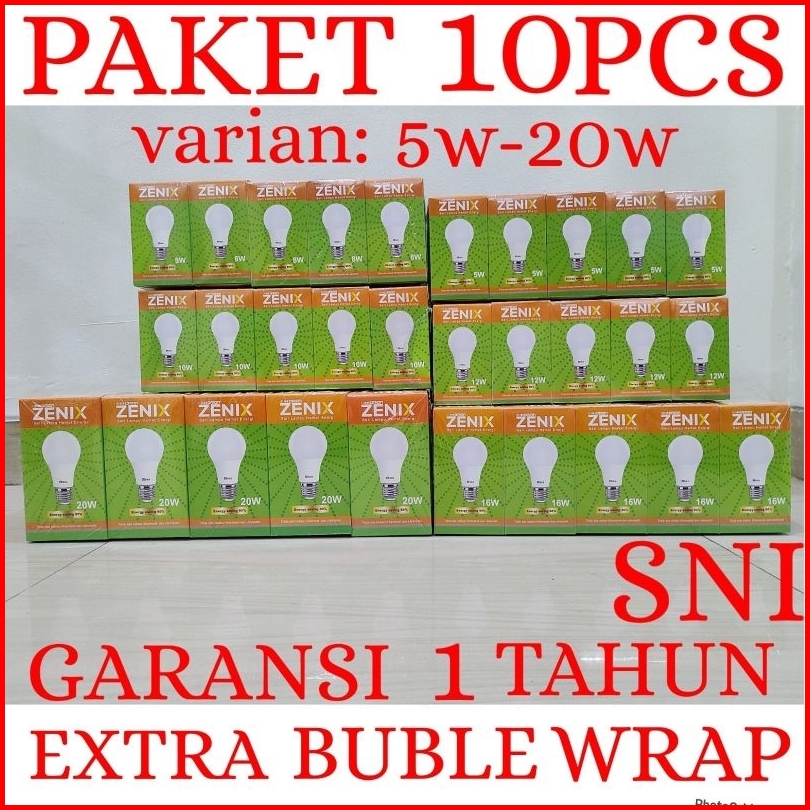 Bohlam Led Lampu Led Garansi 1 Tahun Zenix 5w-20w Paket 10 Pcs