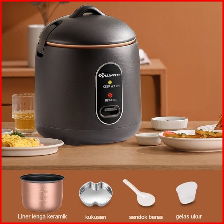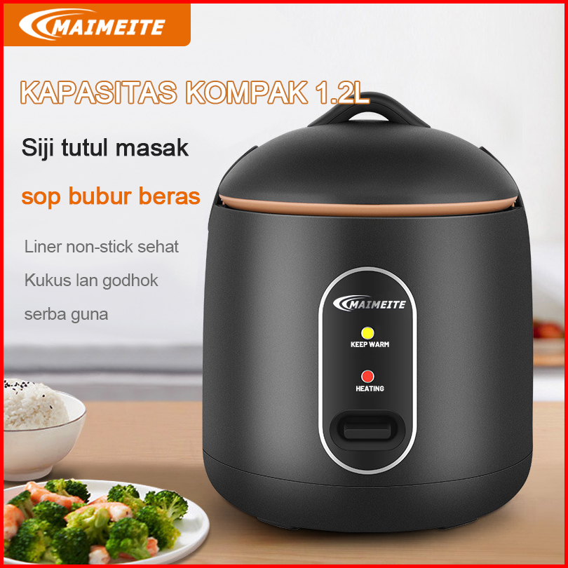 Maimeite Rice Cooker Mini Panci Anti Lengket Penanak Nasi Multifungsi 1.2l Kecil Low Watt Steamer