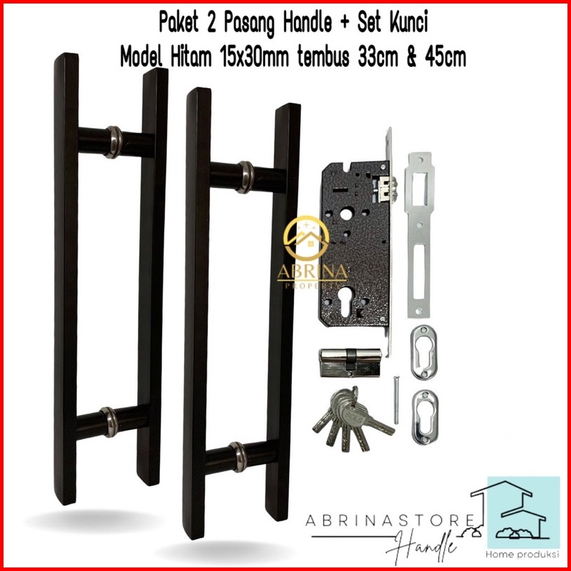 Paket Handle Pintu Rumah Kaki Tembus Set Kunci Panjang 33cm 45cm Stainless Tarikan Gagang Pintu Rumah Minimalis Handel H