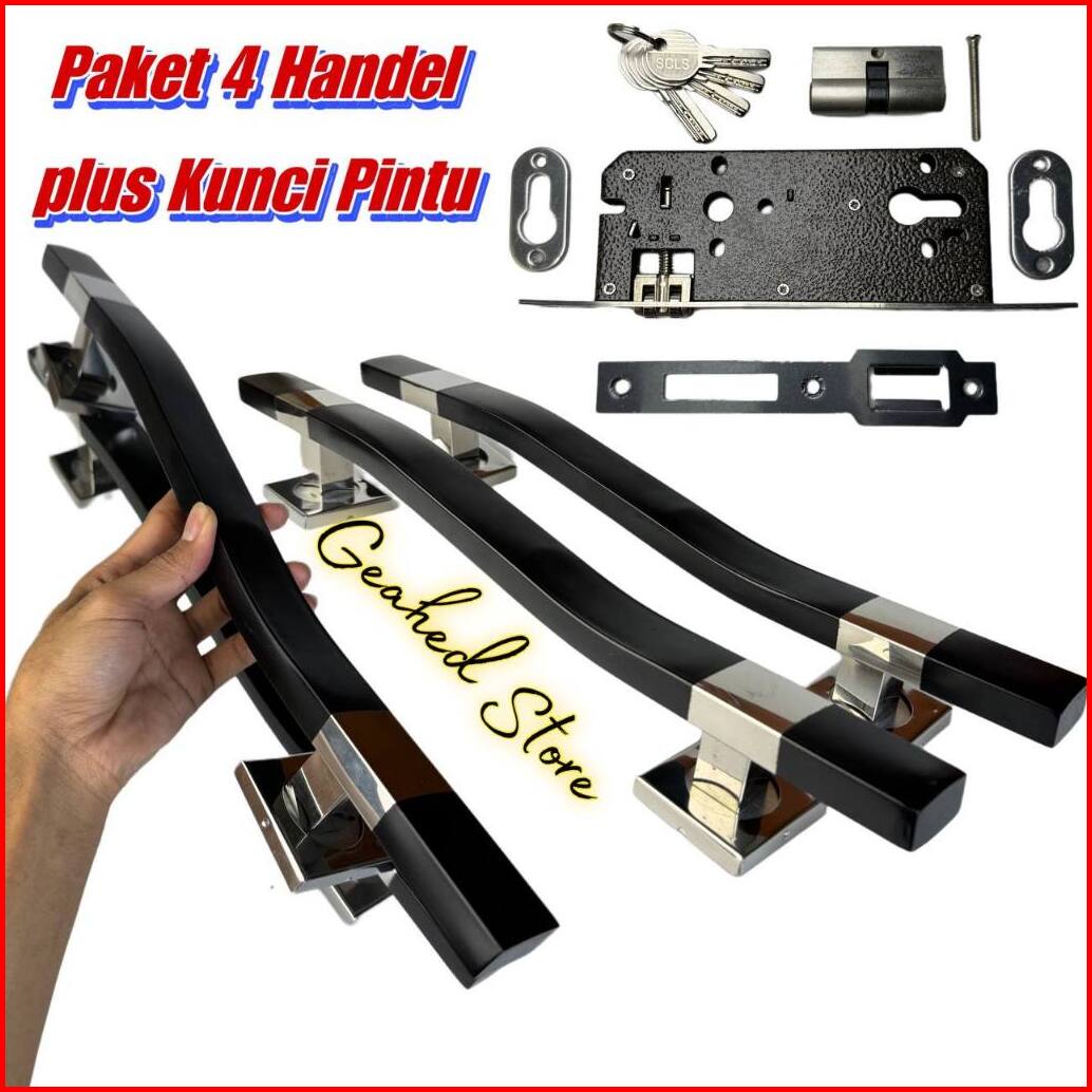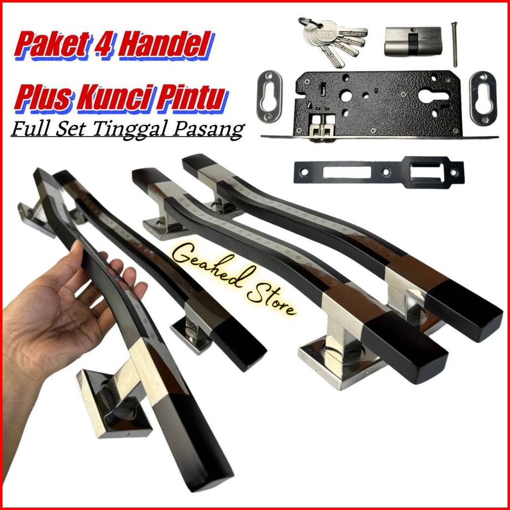 Handle Pintu Gagang Pintu Rumah 2 Pintu Stainless 45 Cm Set Body Kunci Tarikan Pintu Rumah Minimalis
