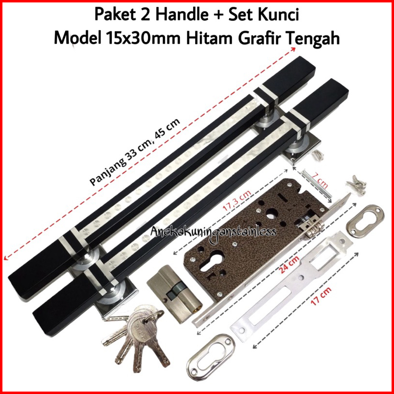 Paket 2 Handle Pintu Set Kunci Model Grafir Tengah Tarikan Gagang Pintu Rumah Minimalis Pegangan Handel Hendel Pintu Rum