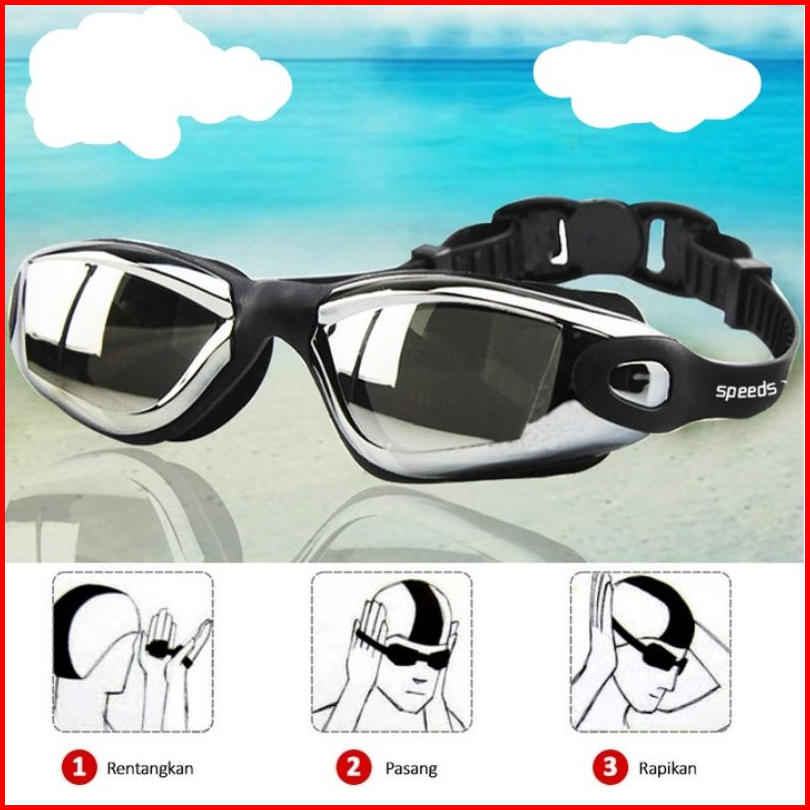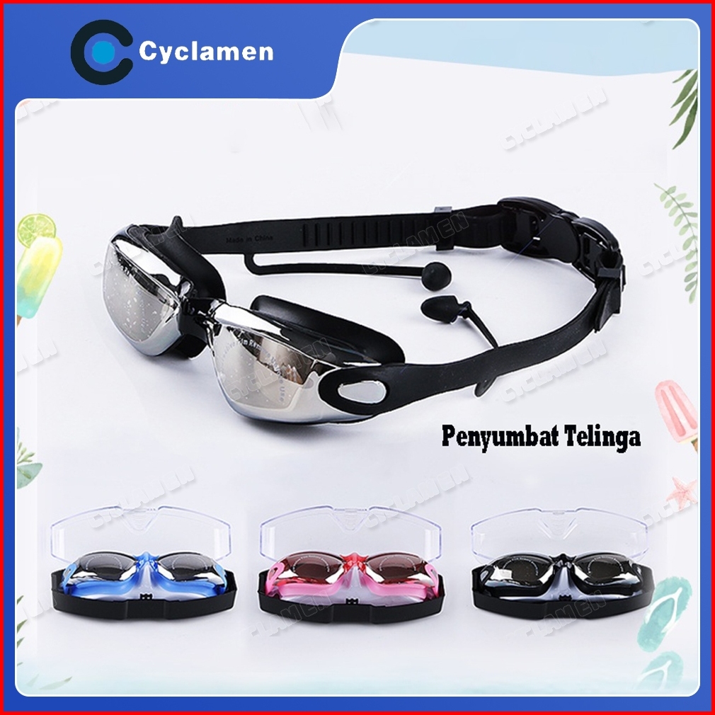 Kacamata Renang Dewasa Chrome Anti Uv Dan Anti Embun Dengan Penutup Telinga Dan Karet Pengaturan Kacamata Renang Origina