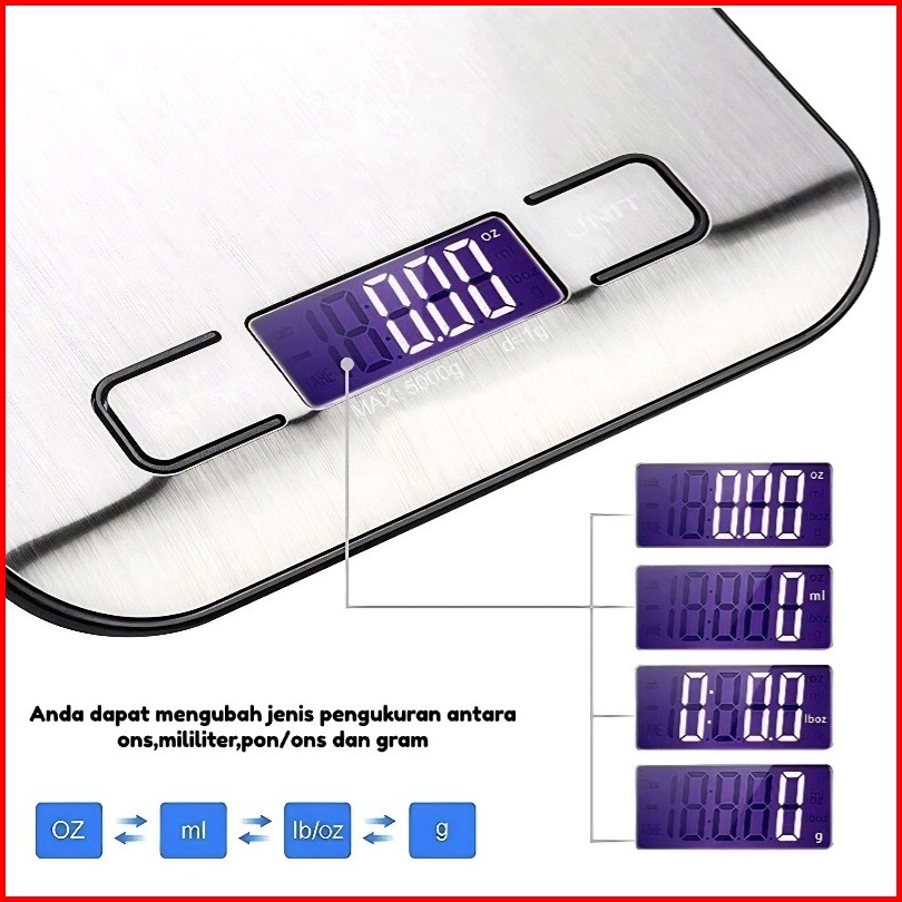 Timbangan Dapur Kue Digital Stainless 5kg 1g