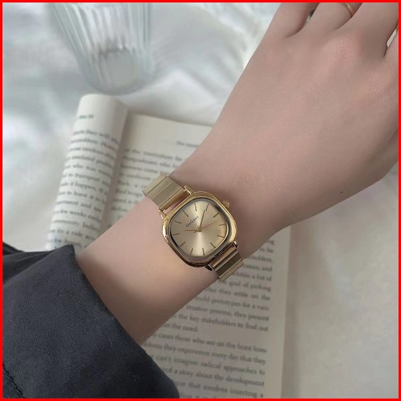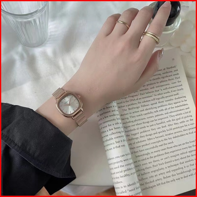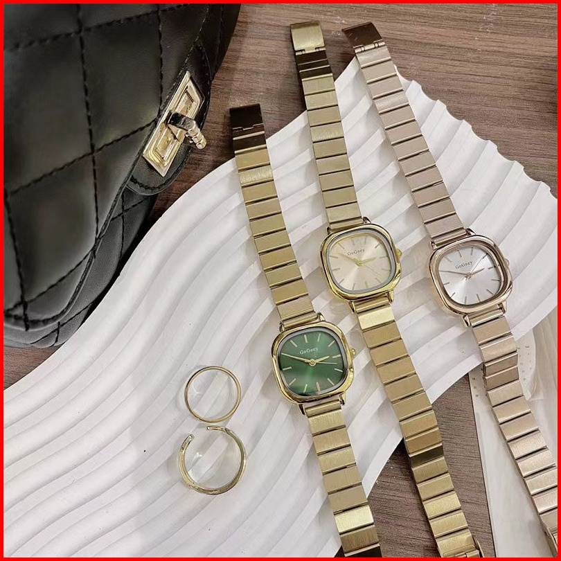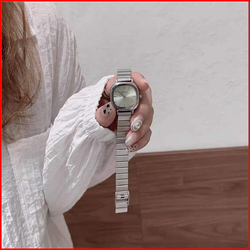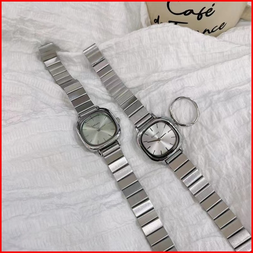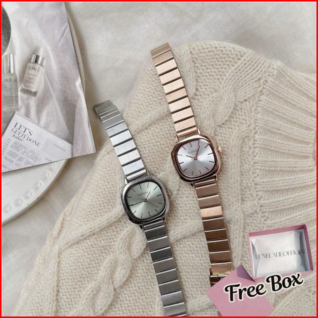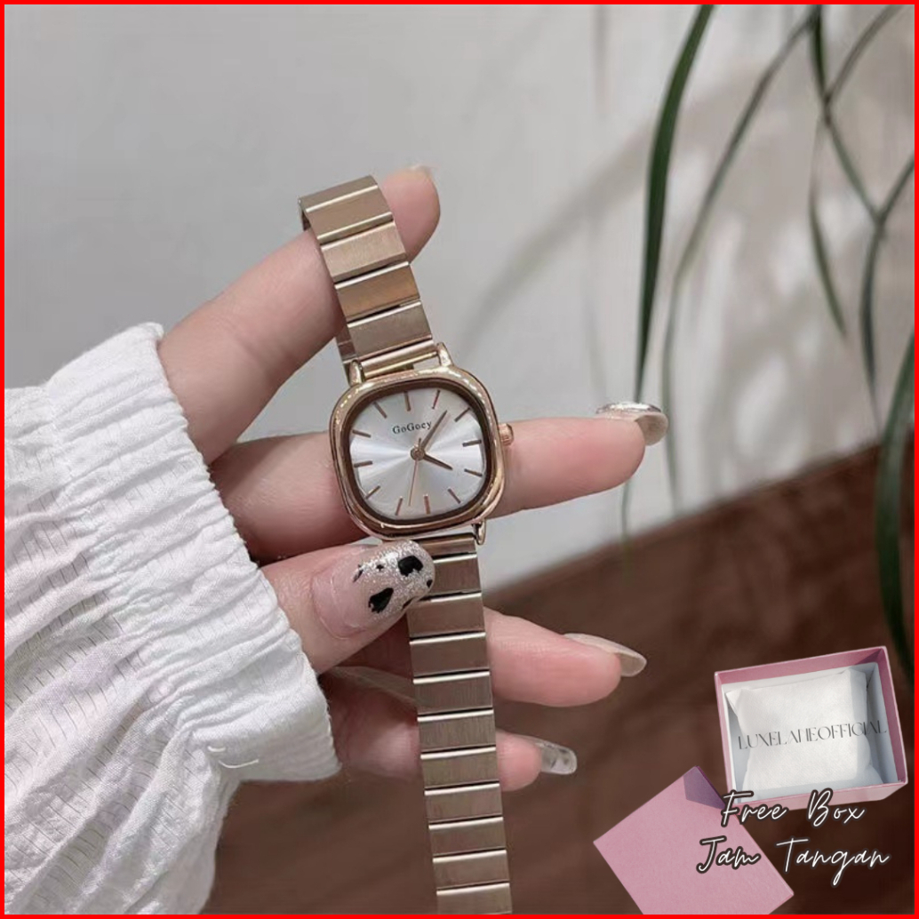 Luxelane Jam Tangan Wanita Rantai Ulzzang Gogoey Warna Silver Rose Kotak Kecil Mini Jam Cewek Square Belt Strap Elegan M