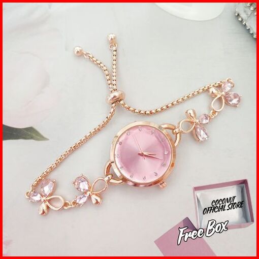 Coconut Jam Tangan Wanita Tali Rantai Serut Simple Bulat Mini Jam Analog Elegant Quartz Dengan Kotak 15
