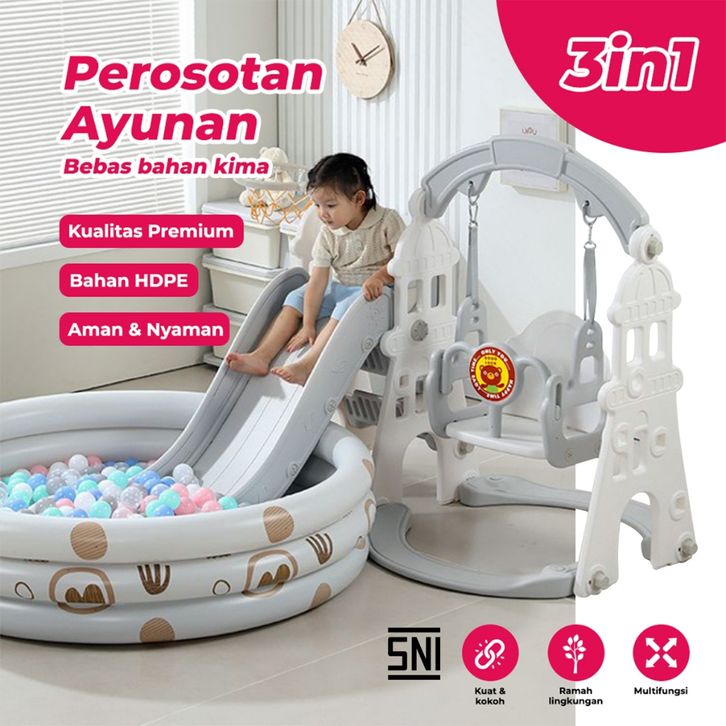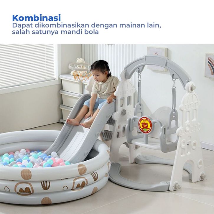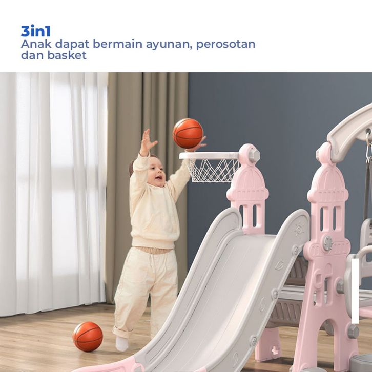 3in1 perosotan anak premium dilengkapi ayunan seluncuran anak FREE RING BASKET + BOLA + MUSIK