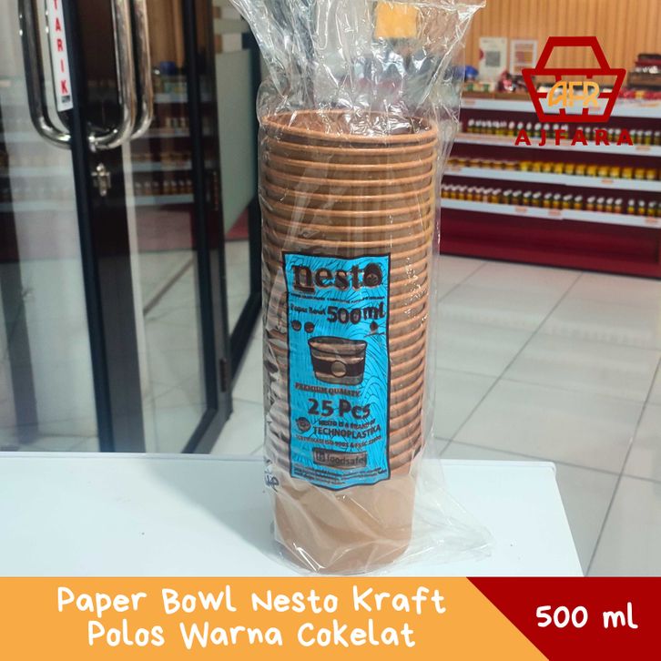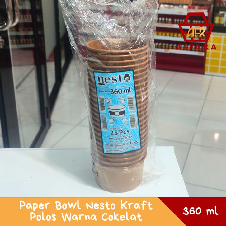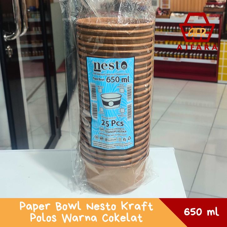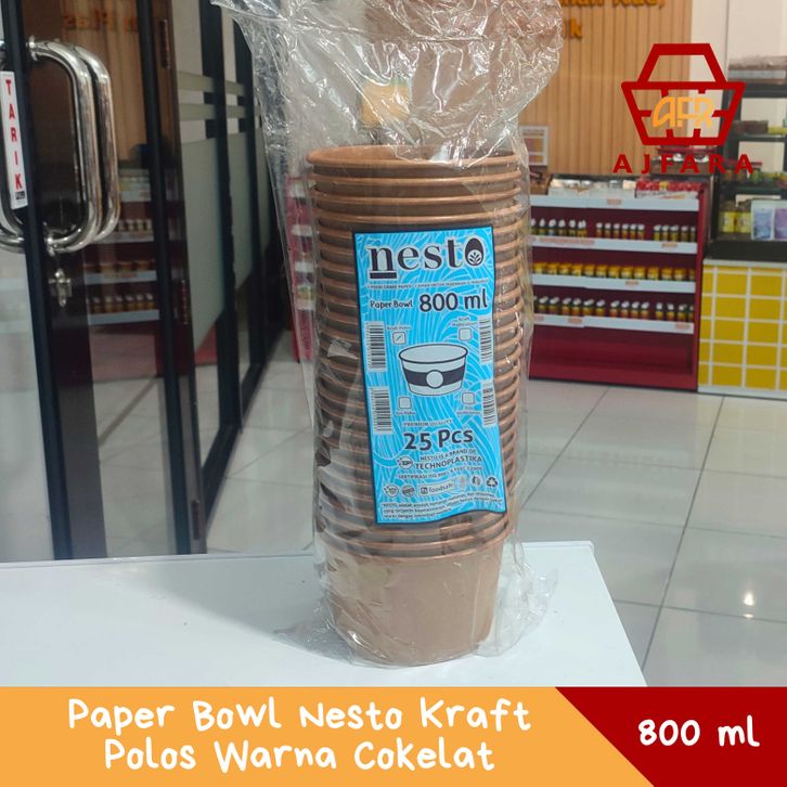 Nesto Paper Bowl Kraft Polos Warna Cokelat – 360 ml / 500 ml / 650 ml / 800 ml (Wadah & Tutup Dijual Terpisah)