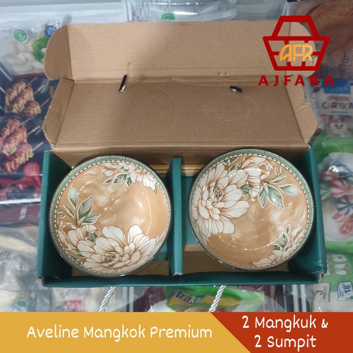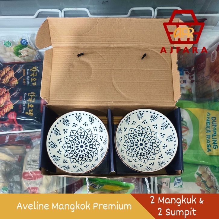 Aveline Mangkok Premium Dua Mangkuk Hias Indah Dalam Kotak Dengan 2 Pasang Sumpit
