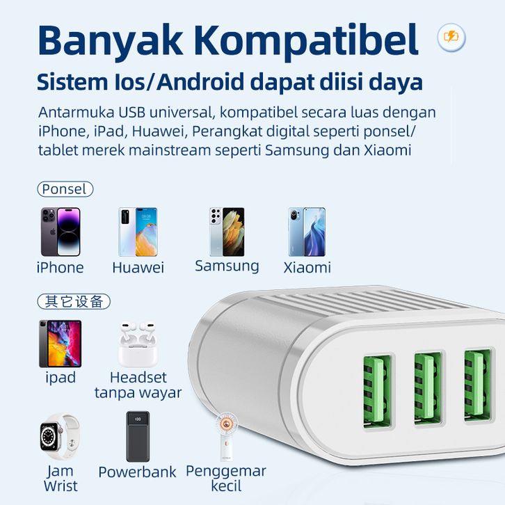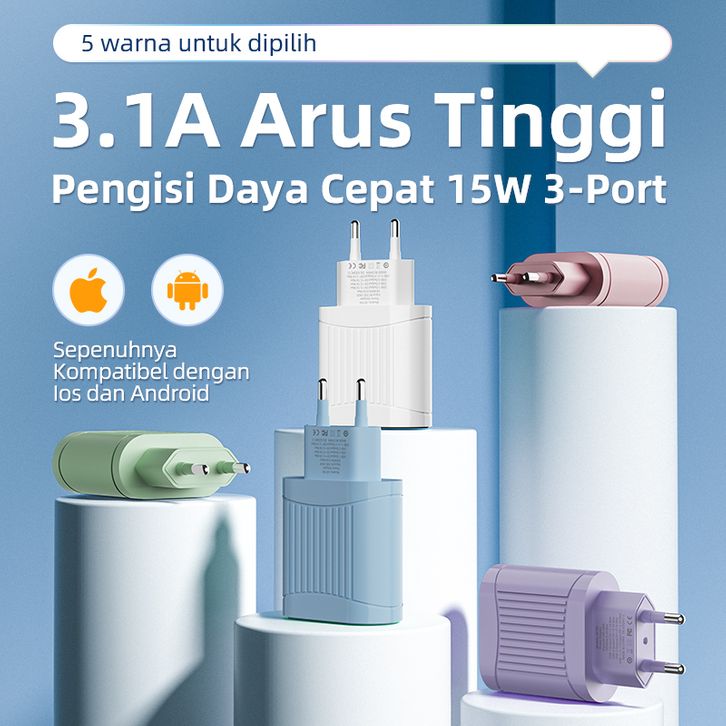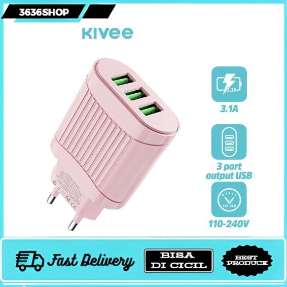Kepala Charger USB Fast charging USB KV-AE106 Pink For iphone Xiaomi Huawei Samsung