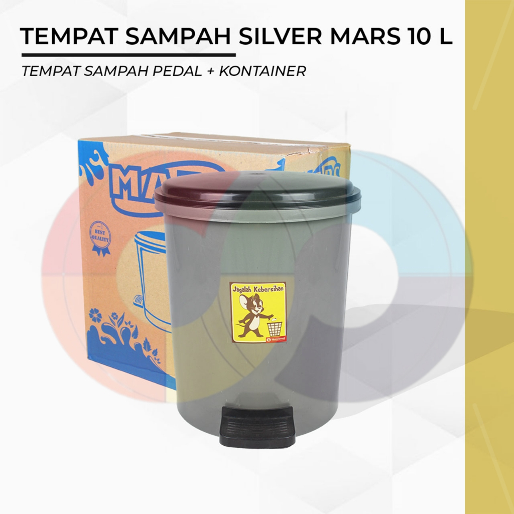 Tempat Sampah Injak Silver 10 Liter Plastik + Kontainer Dalam - Tong Sampah