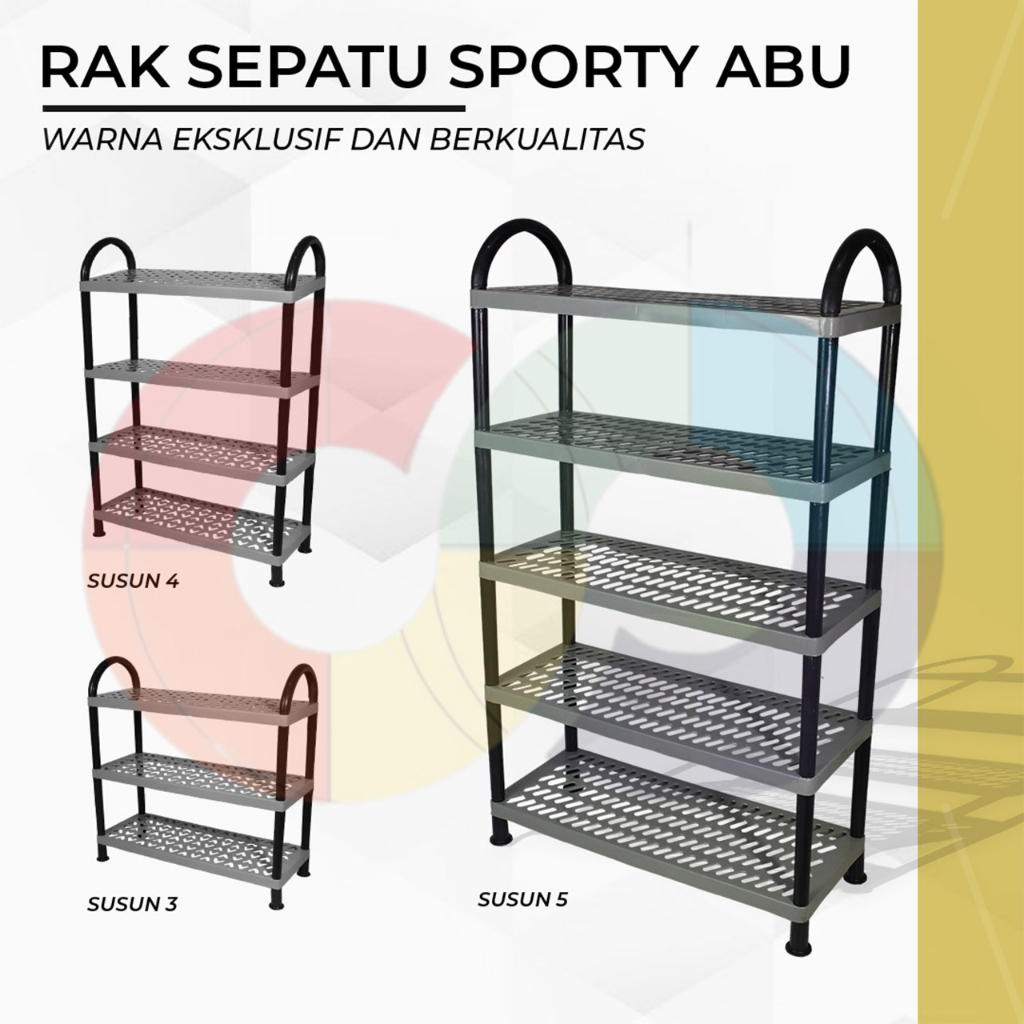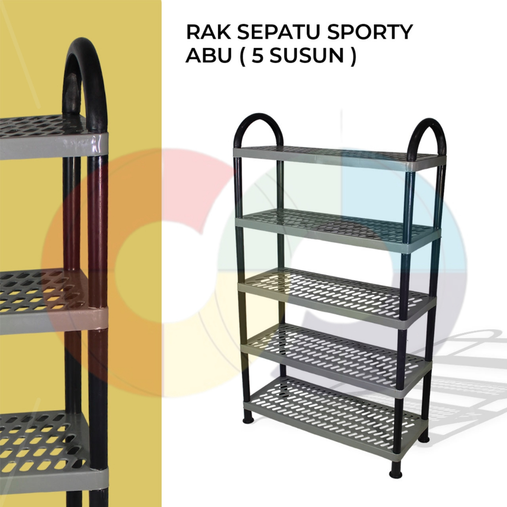 Rak Sepatu Sporty Grey Susun 5 Plastik - Warna Abu-abu Rak sandal