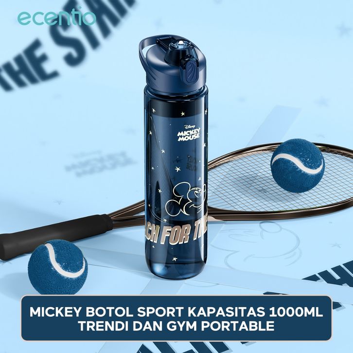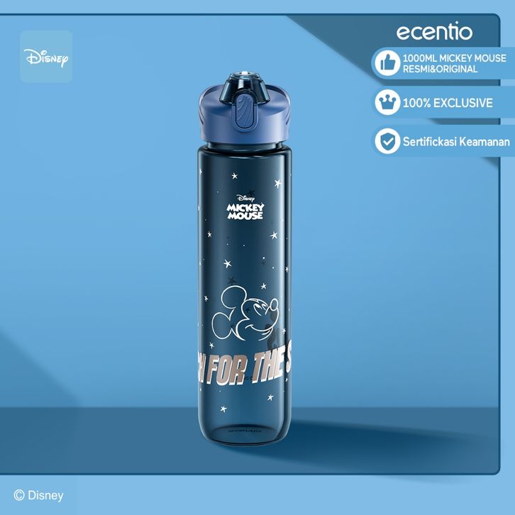 ecentio Botol Minum 1 Liter Disney Mickey Botol Air Anak 1000 mili Botol Olahraga Kantor Sekolah Portable Serbaguna RES