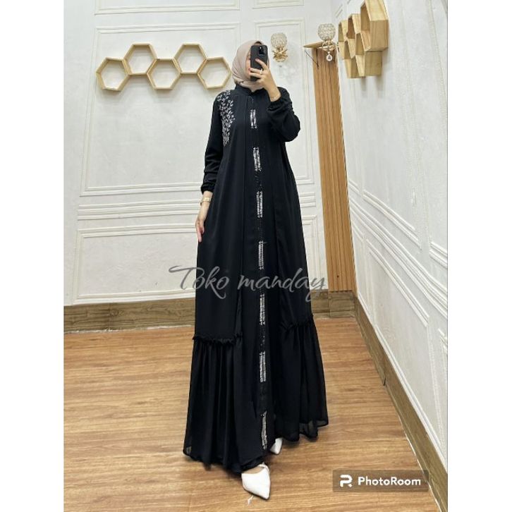 GAMIS ABAYA BAHAN FULL CERUTY BEBYDOLL FULL FURING FASHION MUSLIM GAMIS HARI RAYA LEBARAN GAMIS KONDANGAN TERBARU