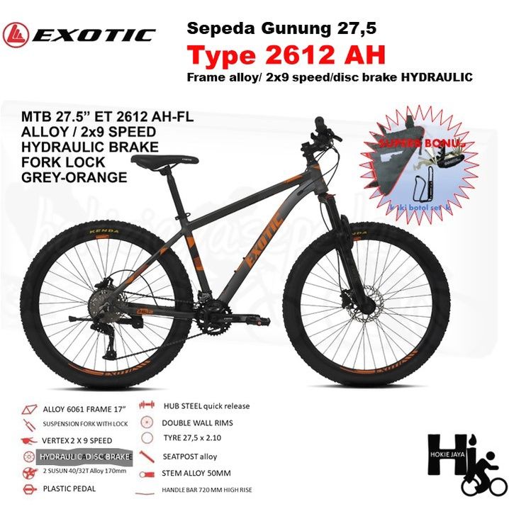 Sepeda ung 27,5 EXOTIC 2612 AH MTB Alloy 2 X 9 Speed/REM HYDRAULIC/FORK LOCK FREE TAS / KAKI BOTOL