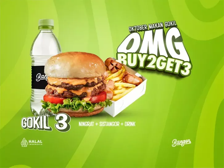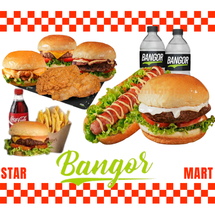 Buy 1 Get 1 Burger Bangor, Buy 1 Get 1 Bangor Sausage, Bangor Crazy Bucket 1, Bangor Crazy Bucket 2, Bangor Crazy Bucket 3, BBQ Wingers 3, BBQ Wingers 5, Grill Box Superior, Grill Box Junior, Kotak Hampers, Super Deal 1, Super Deal 2, Super Deal 3, Super Deal 4, Super Deal 5, Super Deal 6, Super Deal 7, Combo Santuy, Combo Gokil, Party Bar, Party Boom, Paket Mari, Paket Madu, Paket Mabar, Burgetang 1, Burgetang 2, Burgetang 3, Burgetang 4, Buy 1 Get 1 Dipping Fries, Buy 1 Get 1 Ayam Bangor Crispy, Bangor BBQ Smoked Beef, Bangor Creamy Garlic, Bangor Juragan, Bangor Ningrat, Bangor Sultan, Bangor Pitik Fire, Bangor Fish, Bangor Sausage, Bangor Bolognese Sausage, The Congor Cheese, Bangor Cheese Jr Small, Bangor Cheese Jr Large, Bangor BBQ Smoked Beef Cheese, Bangor Creamy Garlic Cheese, Bangor Jelata Cheese, Bangor Juragan Cheese, Bangor Ningrat Cheese, Bangor Sultan Cheese, Bangor Pitik Cheese, Bangor Pitik Fire Cheese, Bangor Fish Cheese, Bangor Cheesy Sausage, Bangor Cheesy Bolognese Sausage, Bangor Spicy Nugget 6 Pcs, Sistangor, Bangor Spicy Nugget 9 Pcs, French Fries, Cheesy Fries, Nachos Fries, Bolognese Fries, Bangor Nugget 6 Pcs, Bangor Nugget 9 Pcs, Family Package A, Family Package B, BFC 1 Ayam Bangor Crispy, BFC Paket 1 Ayam Bangor Crispy, BFC Paket 2 Ayam Bangor Crispy, Soft Drinks, Frestea, Lemon Tea, Tip Driver, Paket Sendiri, Paket Berdua, Paket Ramean, B2G3 BANGOR X MCCAIN 1, B2G3 BANGOR X MCCAIN 2, B2G3 BANGOR X MCCAIN 3, Paket 1 Bangor Fried Chicken Lava, Paket 2 Bangor Fried Chicken Lava, Bangor Lava Sausage, Bangor Lava Cheese Sausage, Double Pitik Fire Cheese, Double Pitik Fire, Spicy Chicken Nugget Isi 9
