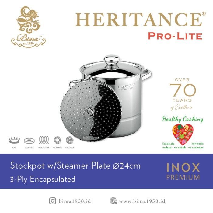 Bima Heritance Pro-Lite Stockpot with Steamer Plate 24cm