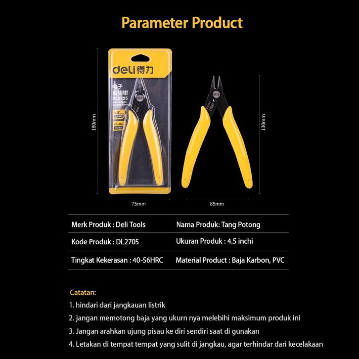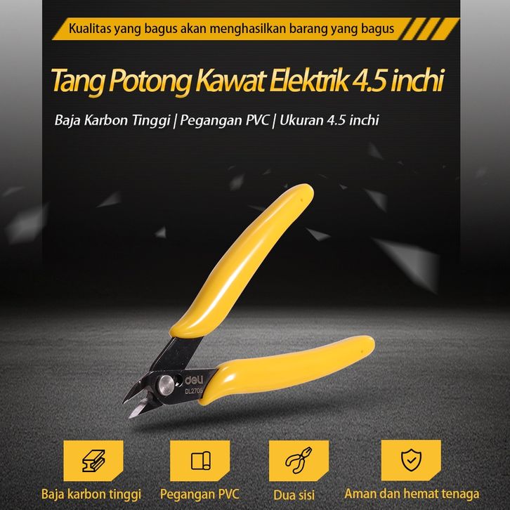 Deli Electric Cutting Pliers/Tang Potong Kawat Tang Mini 4.5 inch Carbon Steel DL2705 /Alat Perkakas