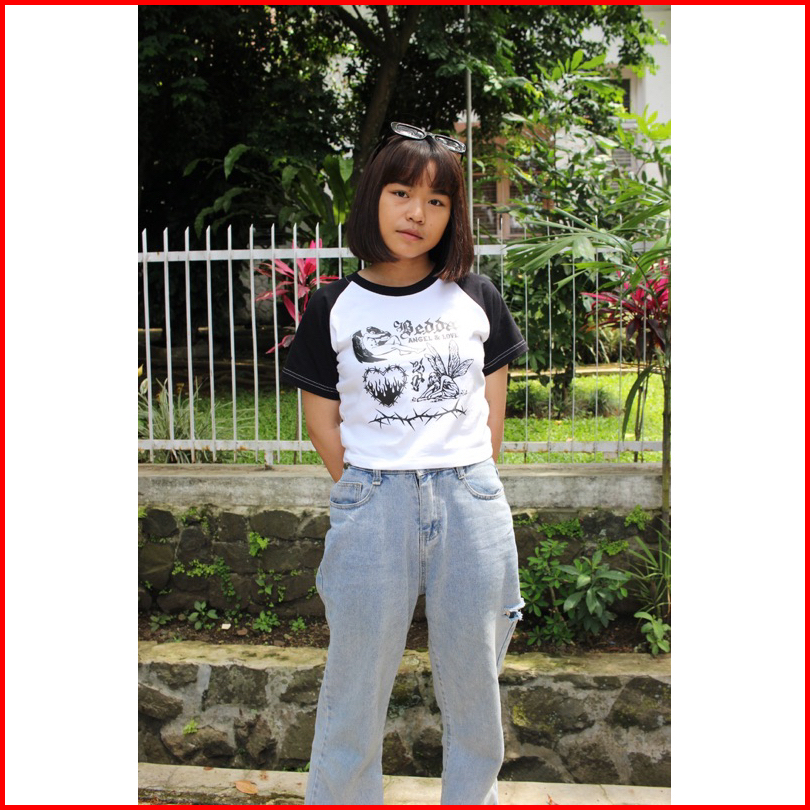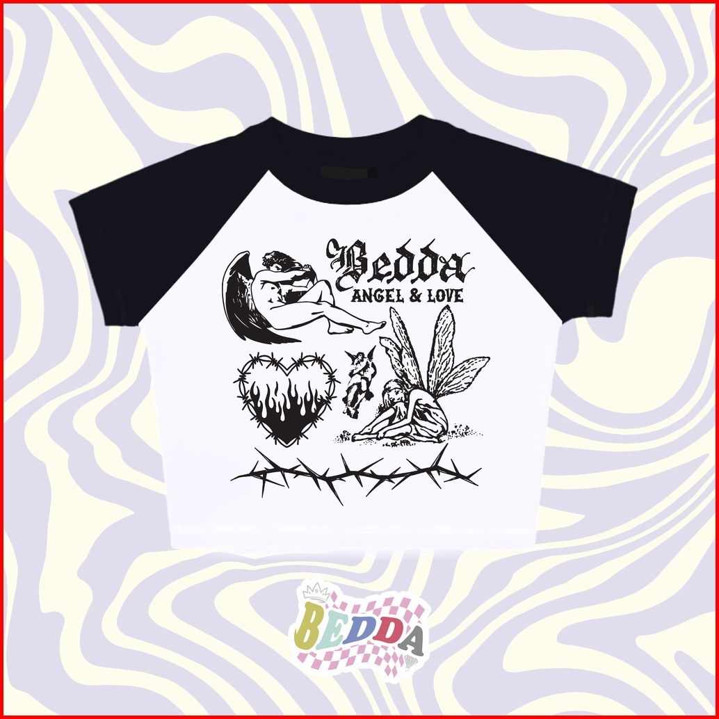 Bedda Slim Fit Croptee Croptop Angel Love Raglan Black White