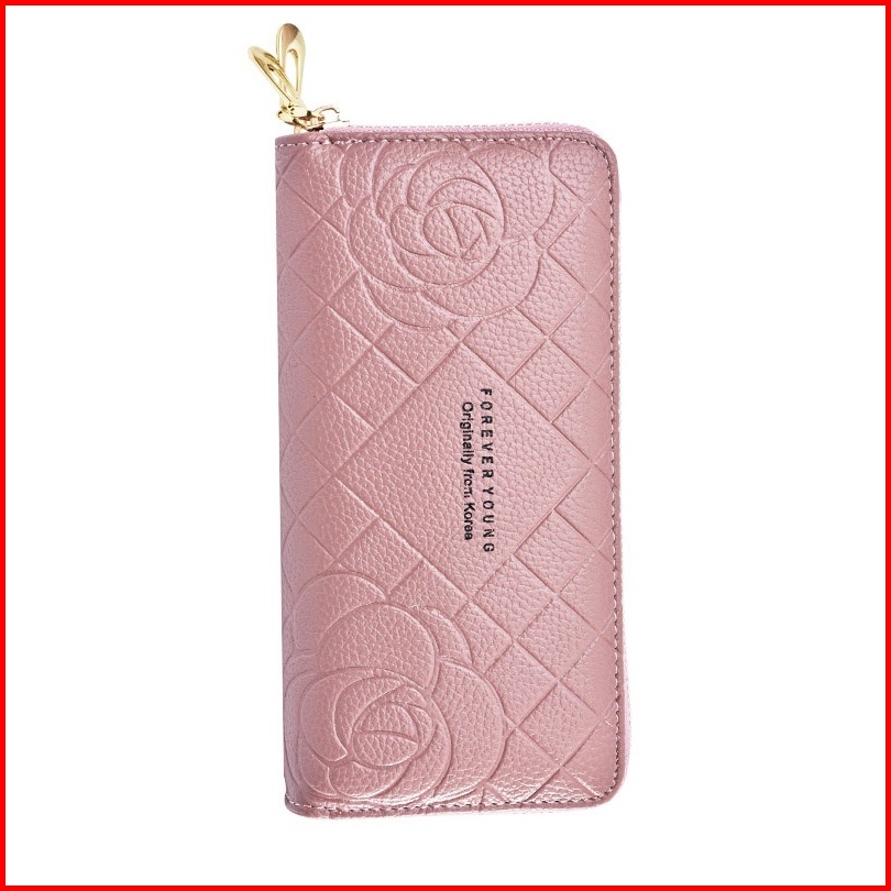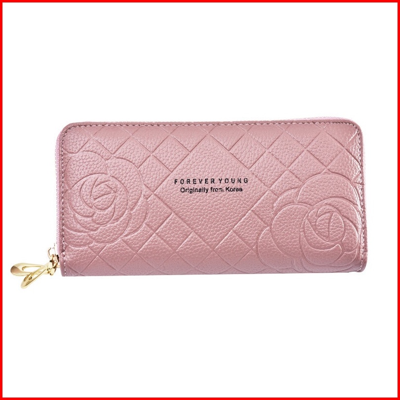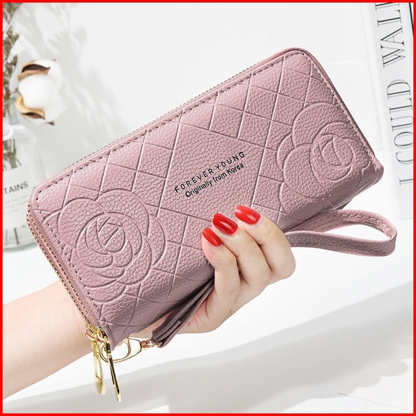 Dompet Panjang Wanita 2 Resleting Premium Pesta Kulit Pink Bunga Portale Wa477p3 Muat Hp Tali Pendek Slot Kartu Uang Koi