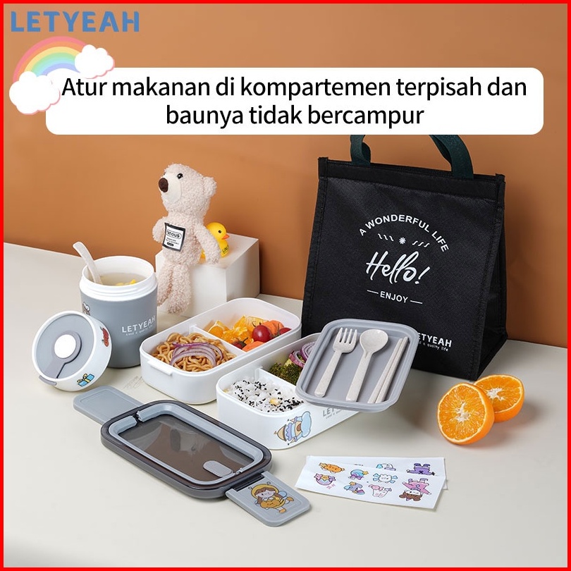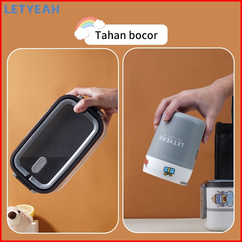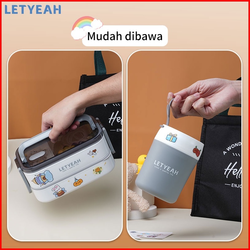 Letyeah Lunch Box 2 Susun Dengan Diy Stiker Kotak Makan 1600ml Dan Mangkuk Sup 500ml Set Portable