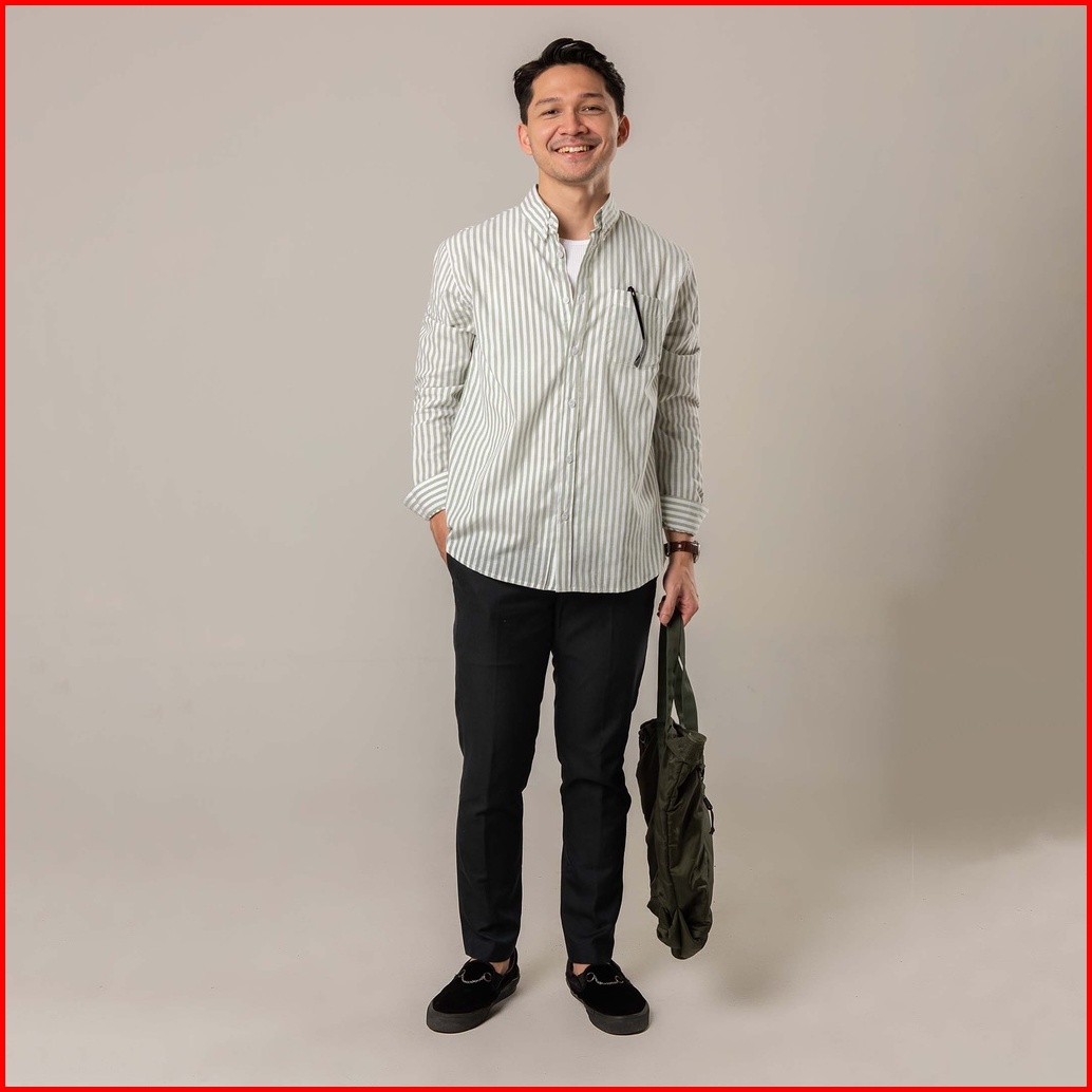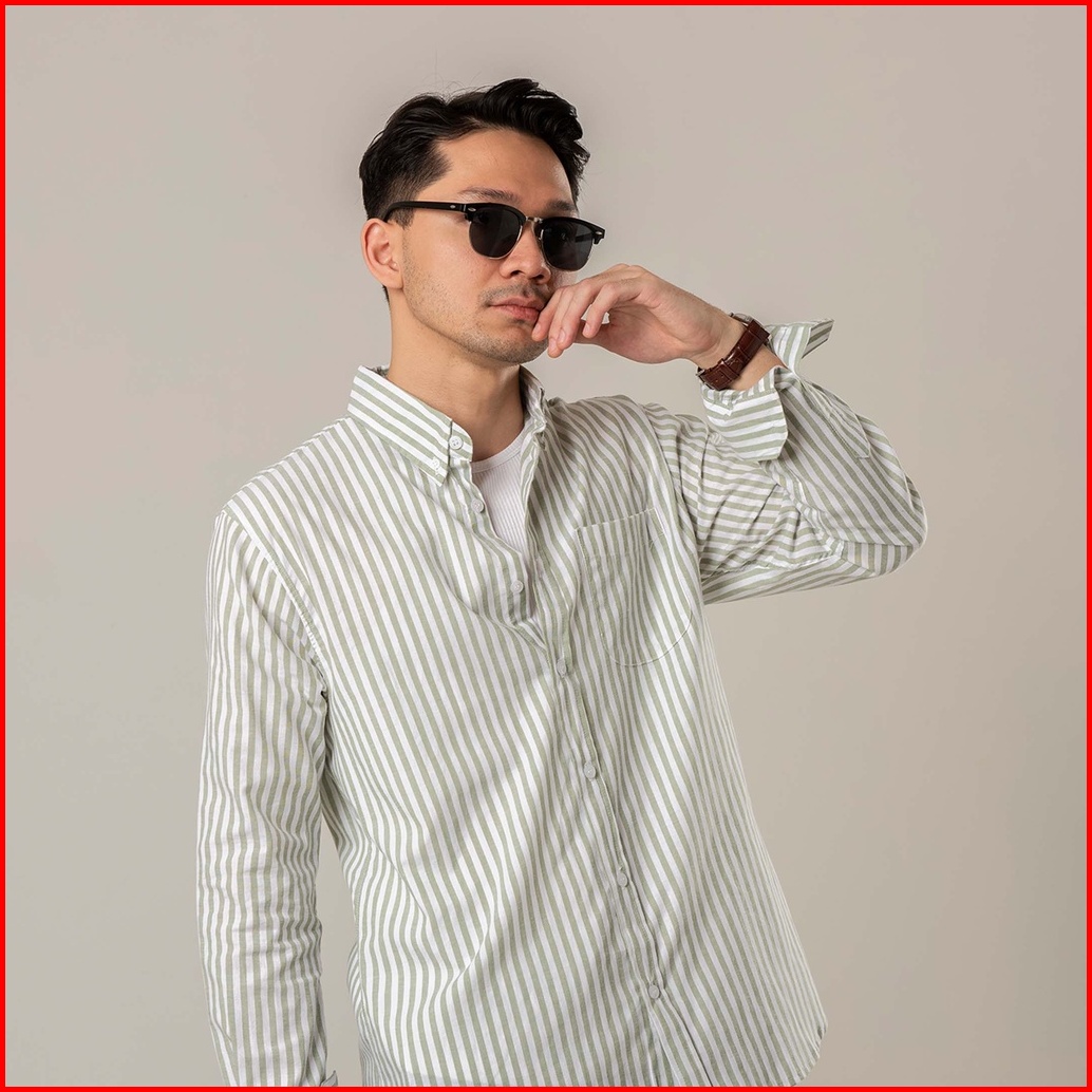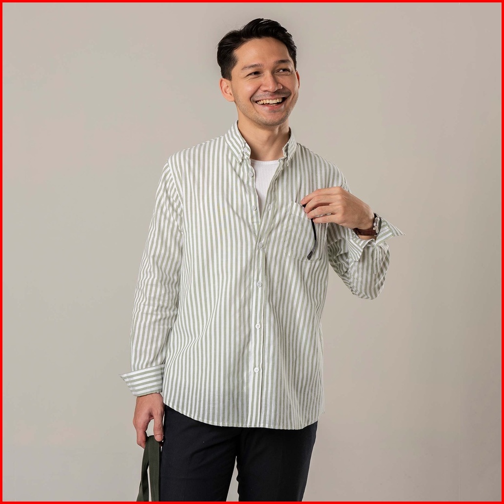 Kemeja Pria Garis Woodcutter Basic Butcher Stripe - Sage Green Lengan Panjang