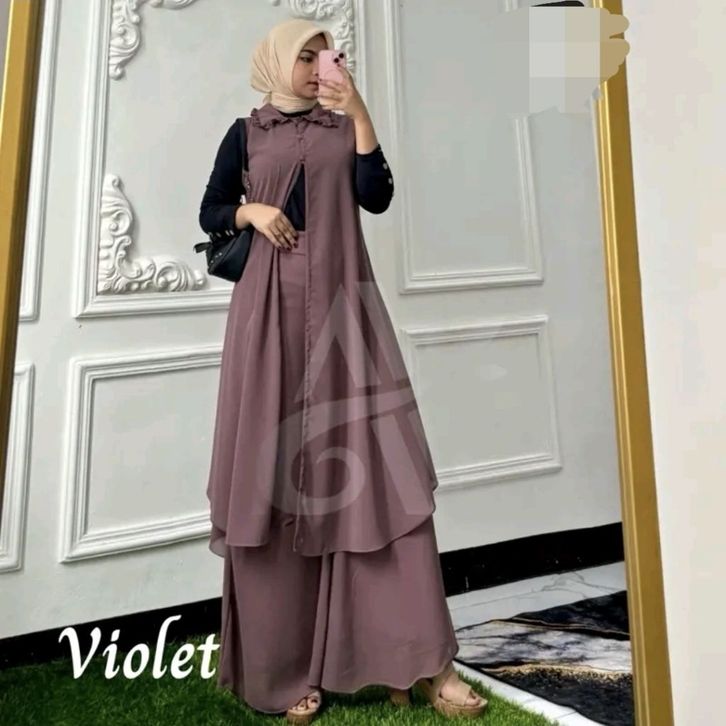 Set Outer dan Kulot Wanita terbaru Lebaran 2026 Outer Wanita Jumbo Ceruty Premium Outer Brokat 2in1 Outer Wanita Korea
