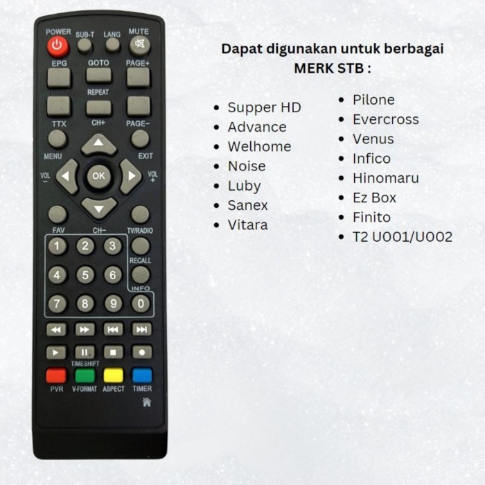 REMOTE STB MULTI LUBY SANEX WELHOME SUPPER HD ADVANCE NOISE VITARA
